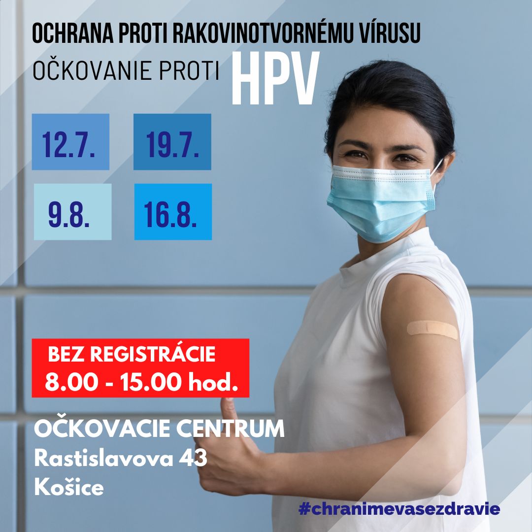 HPV (ľudský papilomavírus) je rakovinotvorný vírus, ktorý môže spôsobiť rakovinu u oboch pohlaví. Na Slovensku zbytočne zomiera na rakovinu krčka maternice viac ako 200 žien ročne. Okrem rakoviny krčka maternice sú to aj iné nádory – rakovina vagíny, penisu alebo konečníka. Dostupná je účinná prevencia vo forme očkovania a preventívnych prehliadok. Vakcína je vhodná pre všetky vekové kategórie od 9 rokov a obe pohlavia.