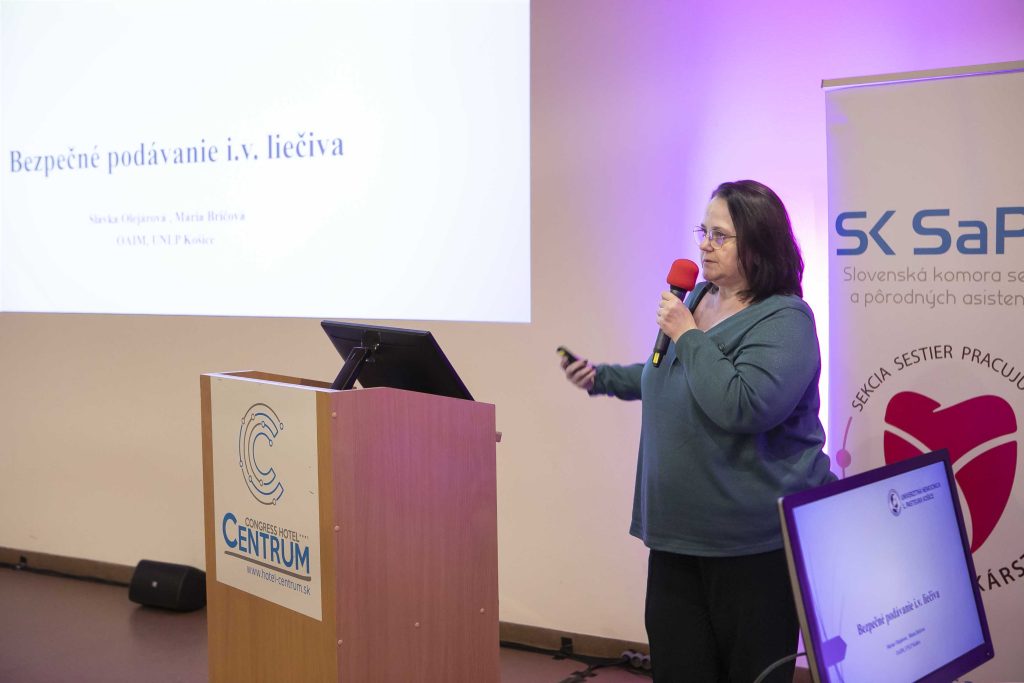 Jednou z piatkových prezentácií na konferencii bola aj prednáška sestry z Oddelenia anestéziológie a intenzívnej medicíny UNLP Košice, Mgr. Slávky Olejárovej, ktorá sa zamerala na bezpečnosť intravenóznej terapie. „Bezpečné podávanie intravenózneho liečiva predstavuje kľúčovú súčasť kvalitnej ošetrovateľskej starostlivosti, pričom jeho správna realizácia priamo ovplyvňuje klinické výsledky, komfort pacienta a minimalizáciu rizík,“ uviedla na podujatí.