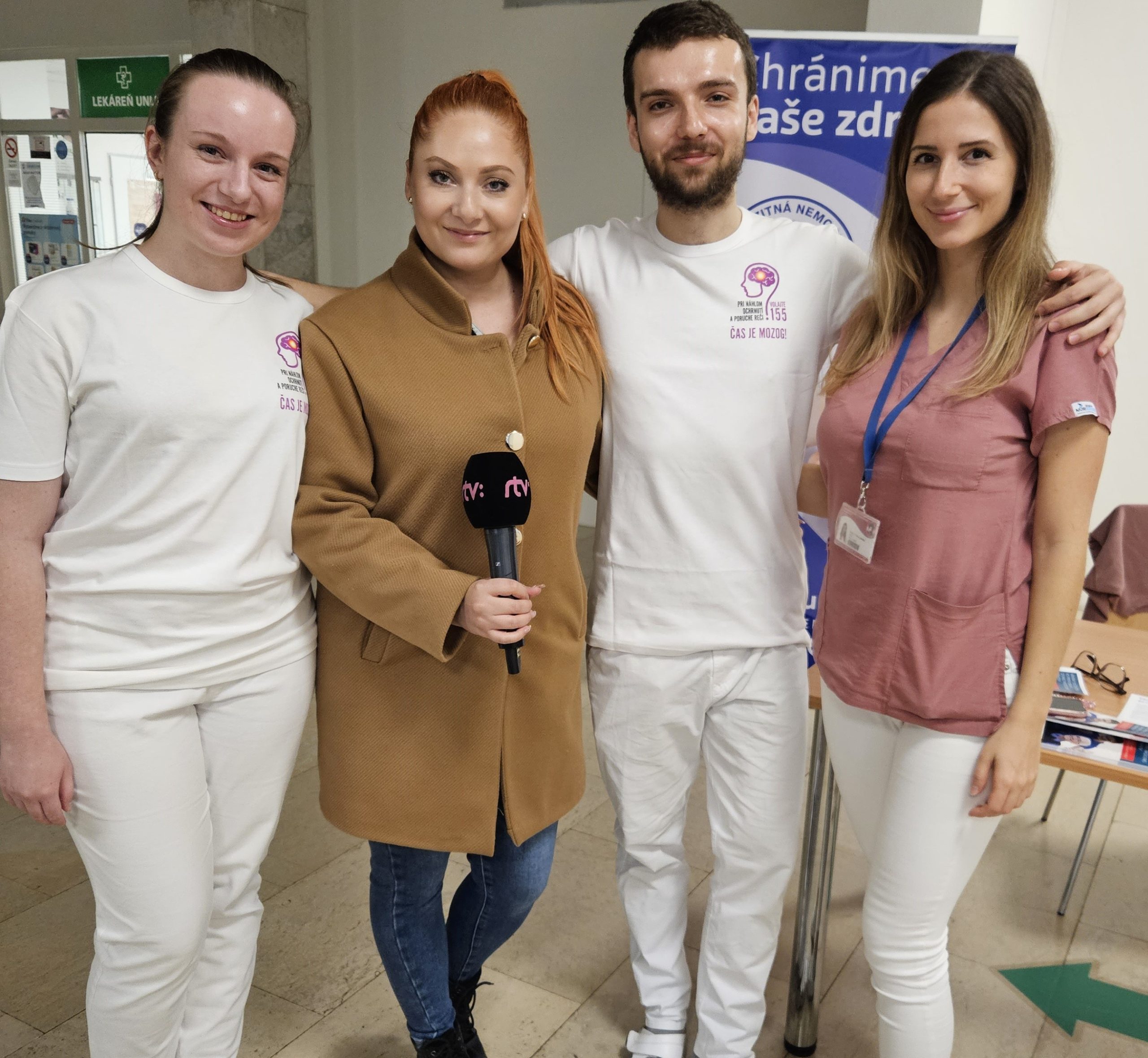 Spolu so študentmi z Lekárskej fakulty UPJŠ, zo Spolku medikov mesta Košice dnes šírila osvetu o tomto ochorení, ktoré je tiché, nenápadné, a človek si ho všimne, až keď sa prejavia základné príznaky. „Práve tie však netreba zanedbať, či podceniť. Naopak je potrebné vyhľadať čím skôr odbornú pomoc. Je veľmi dôležité, aby informácie o mŕtvici mala aj mladšia generácia. Rozdávali sme dnes letáky určené aj pred deti, aby vedeli rozoznať nástup CMP u svojich starých rodičov,“ hovorí Martina Galdunová. Spolu s kolegom Patrikom Bučekom a lekárkou viac ako štyri hodiny zanietenie vysvetľovali všetkým návštevníkom našej polikliniky na Tr. SNP riziká tohto ochorenia a možnosti liečby, pokiaľ je človek po prekonaní CMP.