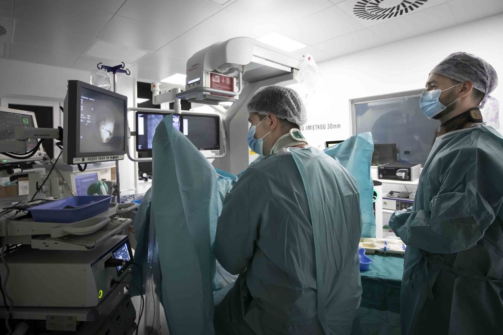 Naše oddelenie urológie sa teší z novej, moderne vybavenej operačnej sály, zameranej hlavne na endourológiu. Využíva sa pri diagnostike a liečbe pacientov s močovými kameňmi. „Operačná sála disponuje tzv. urologickou stanicou s vlastným RTG prístrojom, videoreťazcom a moderným laserom. Využívame ju predovšetkým pri liečbe urolitiázy – močových kameňov, ale aj pri diagnostike a liečbe nádorov močového mechúra a horných močových ciest,“ vysvetľuje primár Urologického oddelenia na Rastislavovej 43, MUDr. Ľubomír Velk, PhD., MPH.