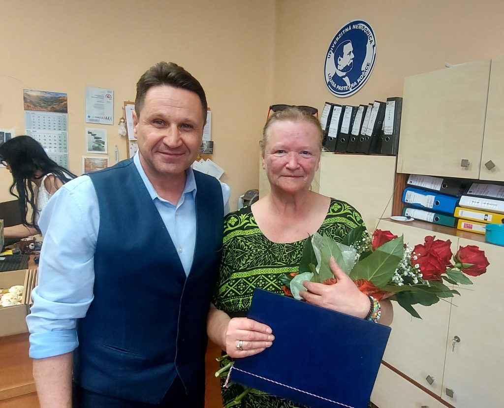 Kolegovia z Technicko-prevádzkového úseku sa po rokoch spolupráce s Máriou rozlúčili. V mene vedenia UNLP jej námestník TPÚ Ing. Igor Havrila odovzdal Ďakovný list: „Chceme sa poďakovať za desiatky rokov práce, ktoré ste odviedli pre naše zdravotnícke zariadenie. Celé roky ste si svedomito, zodpovedne a s oddanosťou plnili svoje pracovné úlohy, motivovali ste pracovný kolektív k tým najlepším výkonom. A to všetko v neľahkých podmienkach, ktoré naša nemocnica má. Na prvý pohľad nenápadné oddelenie, nenápadný pracovný úsek nemocnice, ale o to dôležitejší pre chod celej inštitúcie, pre starostlivosť o našich pacientov. O to viac a zo srdca ĎAKUJEME.“