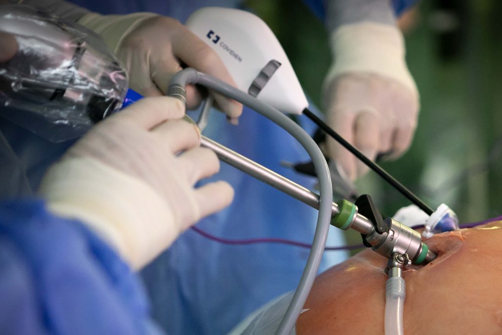 Zhruba 30 – 40 laparoskopických operácií ročne realizuje ženám s prolapsom, teda poklesom panvového dna, profesor MUDr. Peter Urdzík, PhD., MPH – prednosta Gynekologicko-pôrodníckej kliniky UNLP a LF UPJŠ Košice. „Práve sa pripravujeme na operáciu 51-ročnej pacientky, u ktorej došlo ku predpadnutiu maternice. Operovať z laparoskopického prístupu za použitia syntetickej siete sme sa u tejto ženy rozhodli vzhľadom na nález, pre samotnú podstatu miniinvazívneho prístupu ako aj vysokú efektivitu, bezpečnosť a spoľahlivosť,“ začína rozprávanie profesor.  Celý výkon trval približne 90 minút.  „Pacientka sa môže vrátiť do domácej starostlivosti po 48 hodinách, pokiaľ sa u nej neobjavia pooperačné ťažkosti,“ dodal prednosta.
