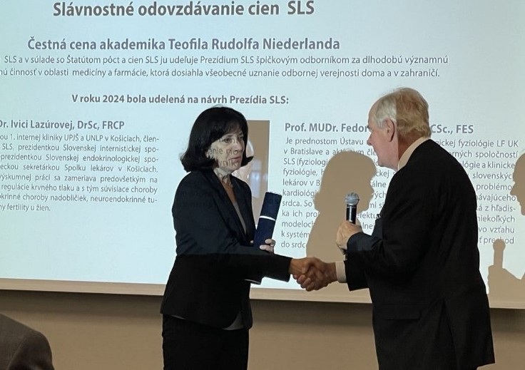 Čestnú cenu akademika Teofila Rudolfa Niederlanda udeľuje Prezídium Slovenskej lekárskej spoločnosti (SLS) ako najvyššie ocenenie. Je určená špičkovým odborníkom za dlhoročnú významnú vedeckú a odbornú činnosť v oblasti medicíny a farmácie, ktorá dosiahla všeobecné uznanie odbornej verejnosti doma i v zahraničí. Prednostka I. internej kliniky UNLP Košice a LF UPJŠ prof. MUDr. Ivica Lazúrová FRCP, DrSc. si toto významné ocenenie prevzala na XXVI. kongrese Slovenskej lekárskej spoločnosti.