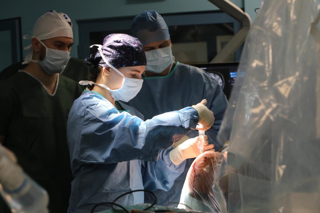 Ide pritom o odbornú spoluprácu dvoch kliník Neurochirurgickej a Neurologickej. Prvé dve operácie s najmodernejšou technológiou realizuje operačný tím: MUDr. Veronika Magočová, MUDr. Kamil Knorovský, MUDr. Aurélia Kollová, PhD. a MUDr. Ján Bánoci a za Neurologickú kliniku doc. MUDr. Matej Škorvánek, PhD. a MUDr. Vladimír Haň, PhD.