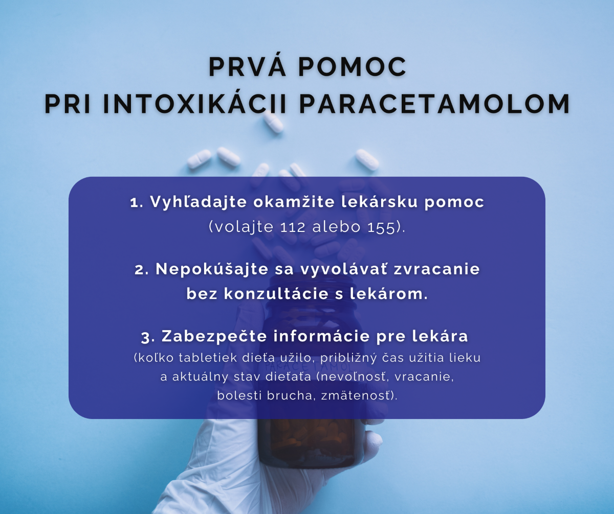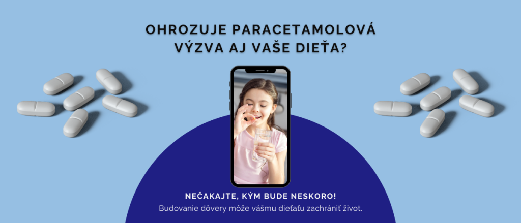 Paracetamolová výzva je nebezpečný trend, ktorý sa šíri najmä cez TikTok a spočíva v užití nadmerného množstva tabletiek s paracetamolom, často v snahe získať pozornosť rovesníkov. Takéto užívanie liekov môže vážne poškodiť zdravie a ohroziť život dieťaťa. Intoxikáciu paracetamolom nikdy nepodceňujte – príznaky sa môžu prejaviť oneskorene (až po 24 hodinách).