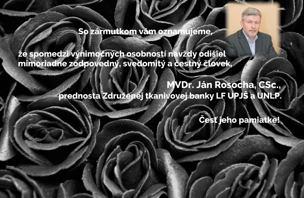 Posledná rozlúčka s MVDr. Jánom Rosochom, CSc. bude v sobotu 8.10.2022 o 9:50 hod. v obradnej sieni AVE+ na Rastislavovej 83 v Košiciach.