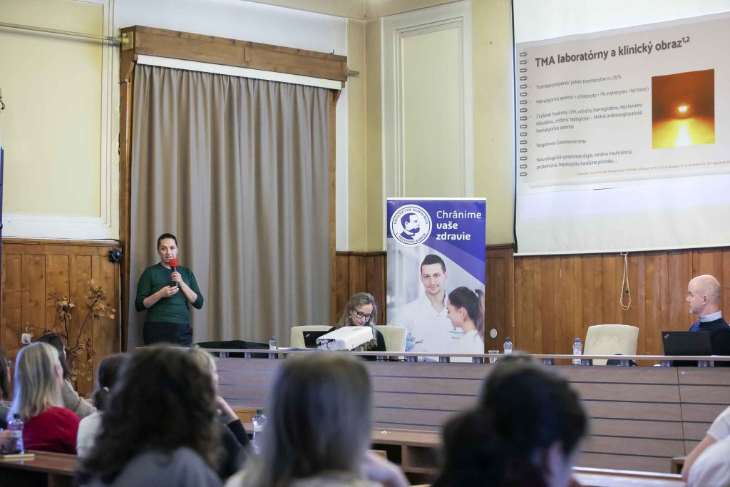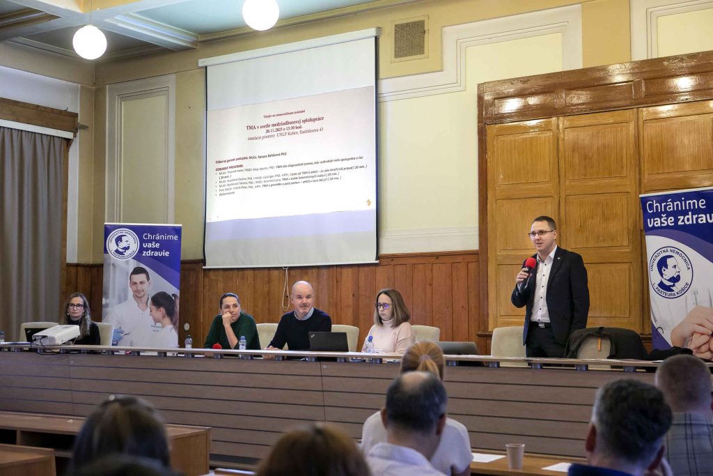 Dvojhodinové podujatie „TMA v svetle medziodborovej spolupráce“ prinieslo štyri prednášky venované trombotickej mikroangiopatii (TMA) – súboru rýchlo progredujúcich a život ohrozujúcich stavov. Lekári zdôraznili, že úspešná liečba TMA stojí na úzkej koordinácii viacerých odborov: hematológie, nefrológie, intenzívnej medicíny, transplantológie, gynekológie a ďalších.