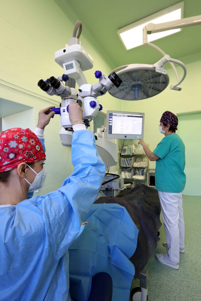 Oční chirurgovia na našom Očnom oddelení realizujú operačný výkon očným mikroskopom najnovšej generácie s maximálnou presnosťou. Oproti klasickej operácii, trabekulektómii, ktorá sa dodnes využíva pri liečbe pokročilého glaukómu, nie je tento moderný operačný postup komplikovaný a rýchlejšia je aj rekonvalescencia. „V lokálnej anestéze, sa podá len injekcia na znecitlivenie pod spojovku, pacientovi vložíme implantát do prednej časti oka. Drenážny implantát odvádza nadbytočnú tekutinu z oka pod spojovku, čím sa vysoký tlak v oku stabilizuje,“ hovorí primárka Očného oddelenia. Skúsený operatér je s operáciou hotový do 20 minút a pacient ostáva v nemocnici maximálne dva dni, ak je pooperačný priebeh bez komplikácií. Operácia je hradená poisťovňami.