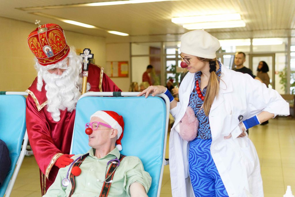 Dobrú náladu, spev aj humor, a to priamo v odberových kreslách, zažili darcovia krvi vďaka dvojici klaunov z OZ Červené nosy Clowndoctors – Sestre Svižnej a Doktorovi Harmančekovi, ktorý si na záver s odvahou a presvedčením sadol do odberového kresla a so spevom daroval krv.