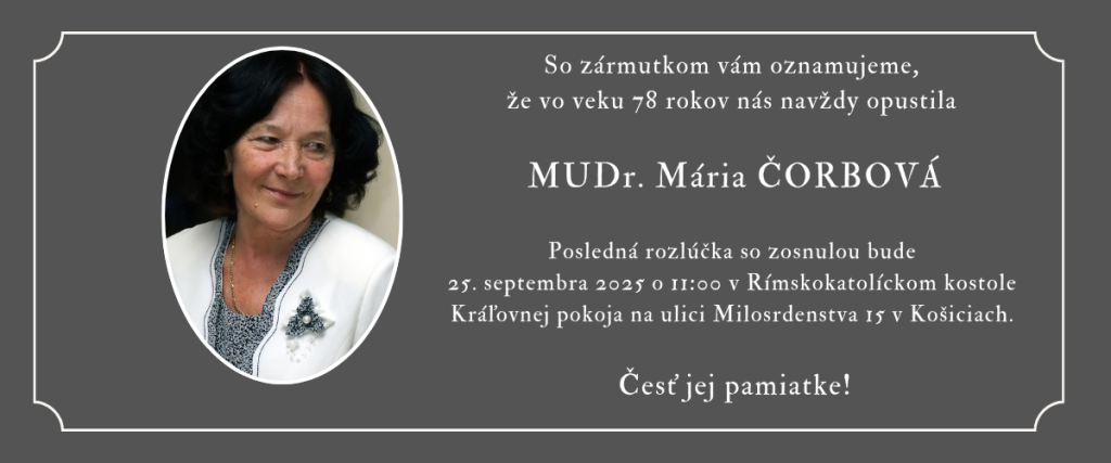 Dňa 17. septembra 2025 sme s hlbokým zármutkom prijali smutnú správu o úmrtí MUDr. Márie Čorbovej. Na našej Očnej klinike na Triede SNP 1 pôsobila od…