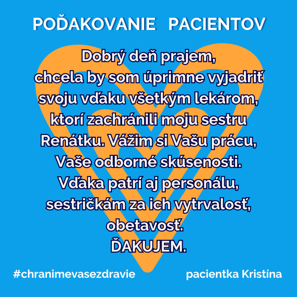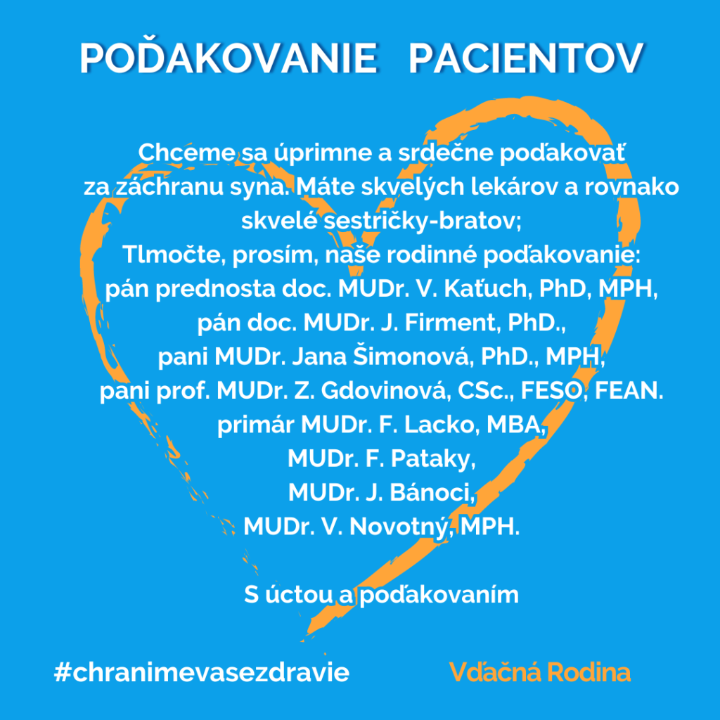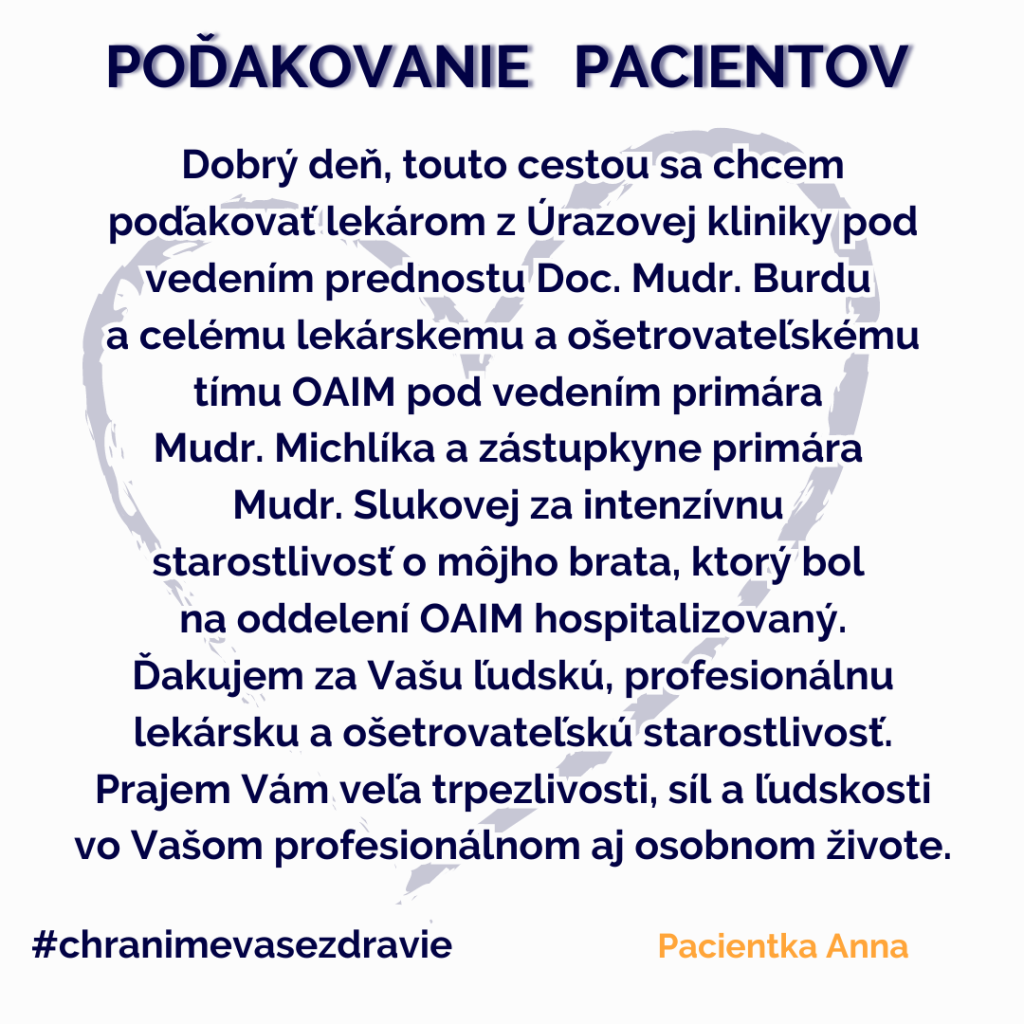 POĎAKOVANIE pre Oddelenie anestéziológie a intenzívnej medicíny a Kliniku úrazovej chirurgie, Rastislavova 43.