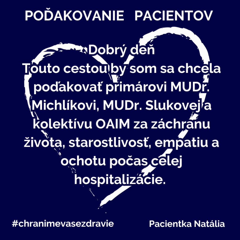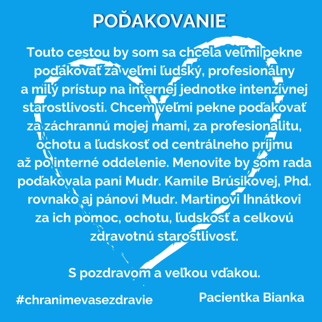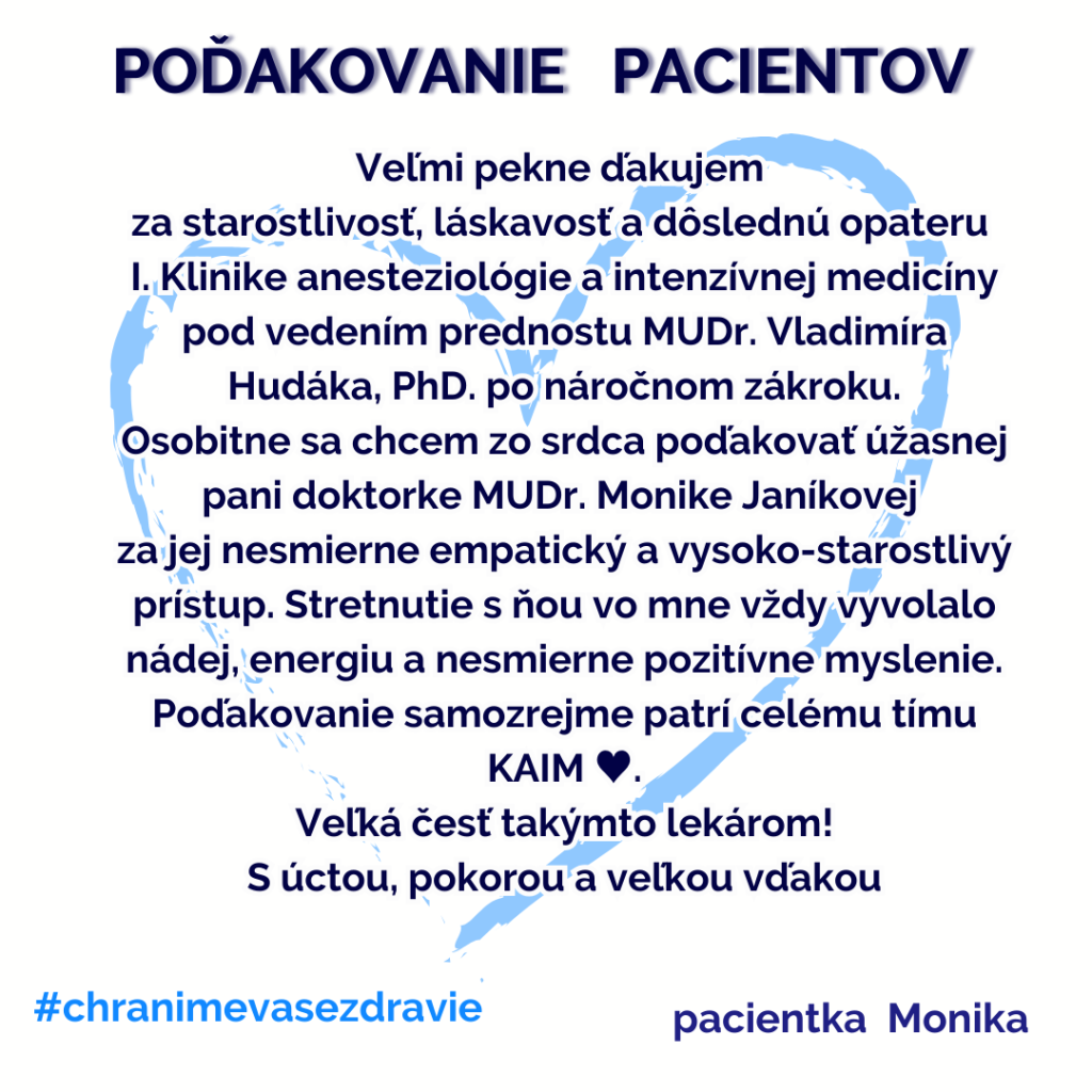 POĎAKOVANIE pre Oddelenie anestéziológie a intenzívnej medicíny a Kliniku úrazovej chirurgie, Rastislavova 43.