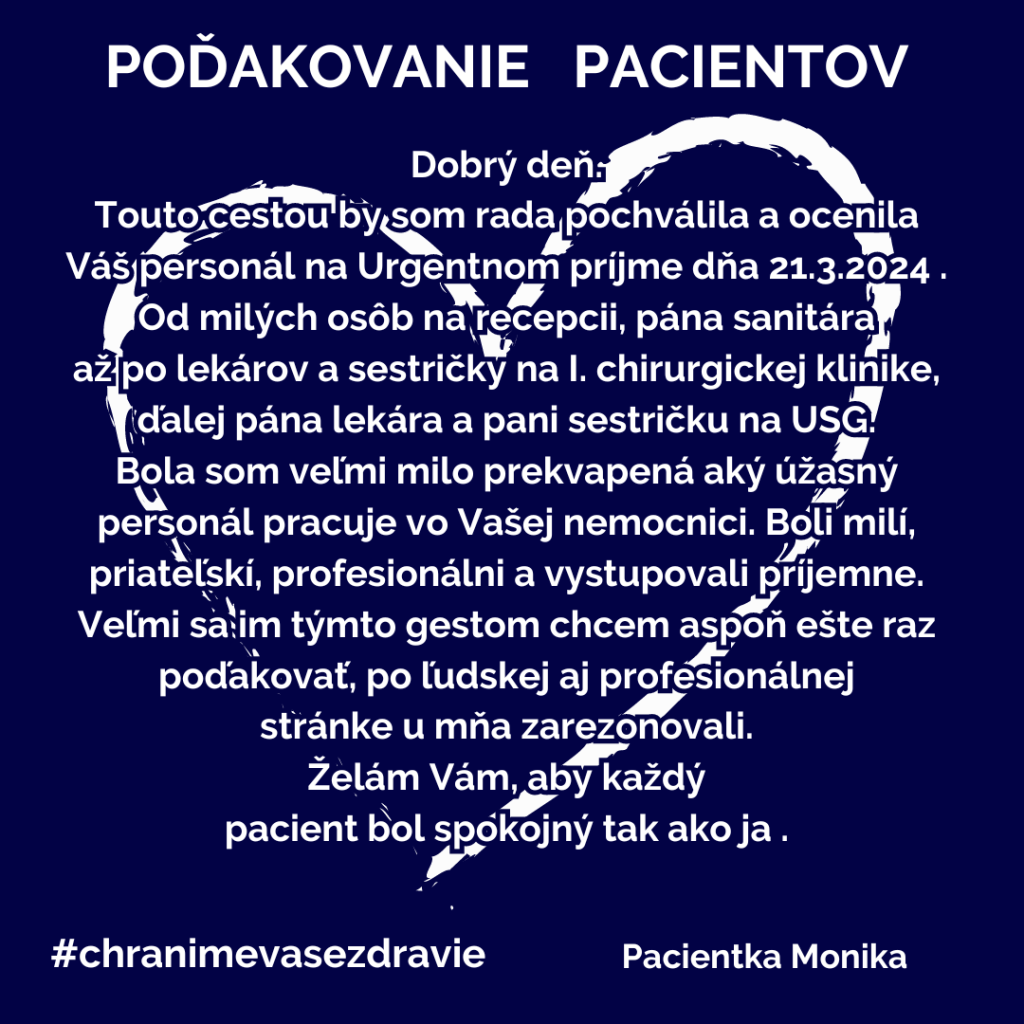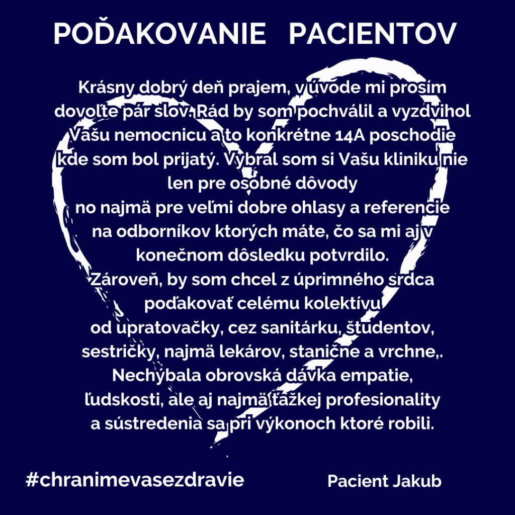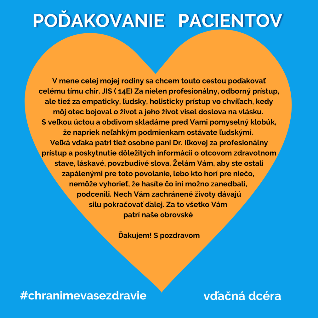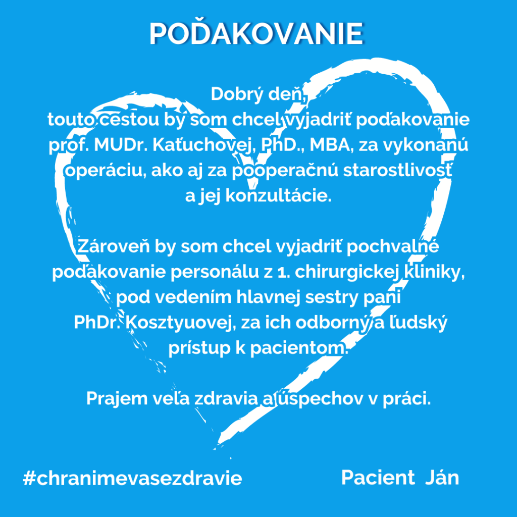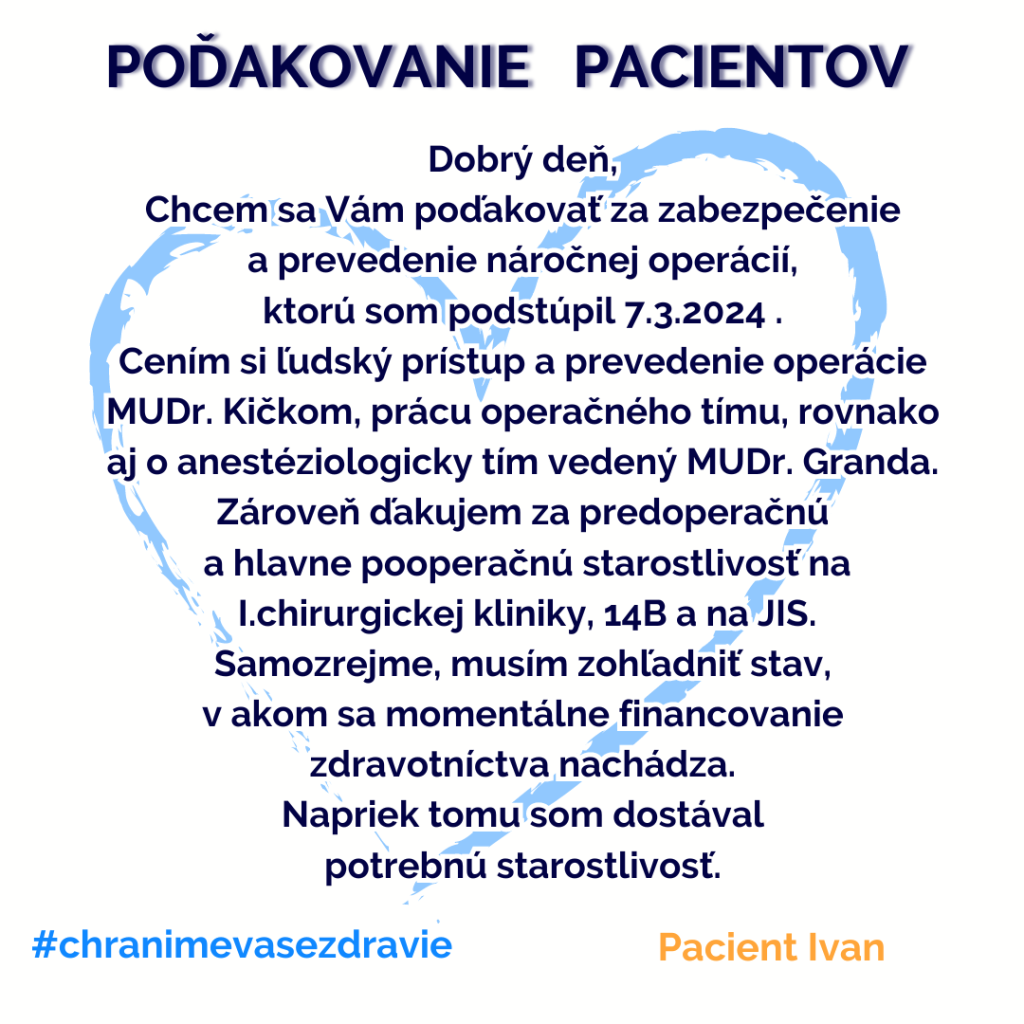 POĎAKOVANIE pre I. chirurgickú kliniku, Tr. SNP 1.