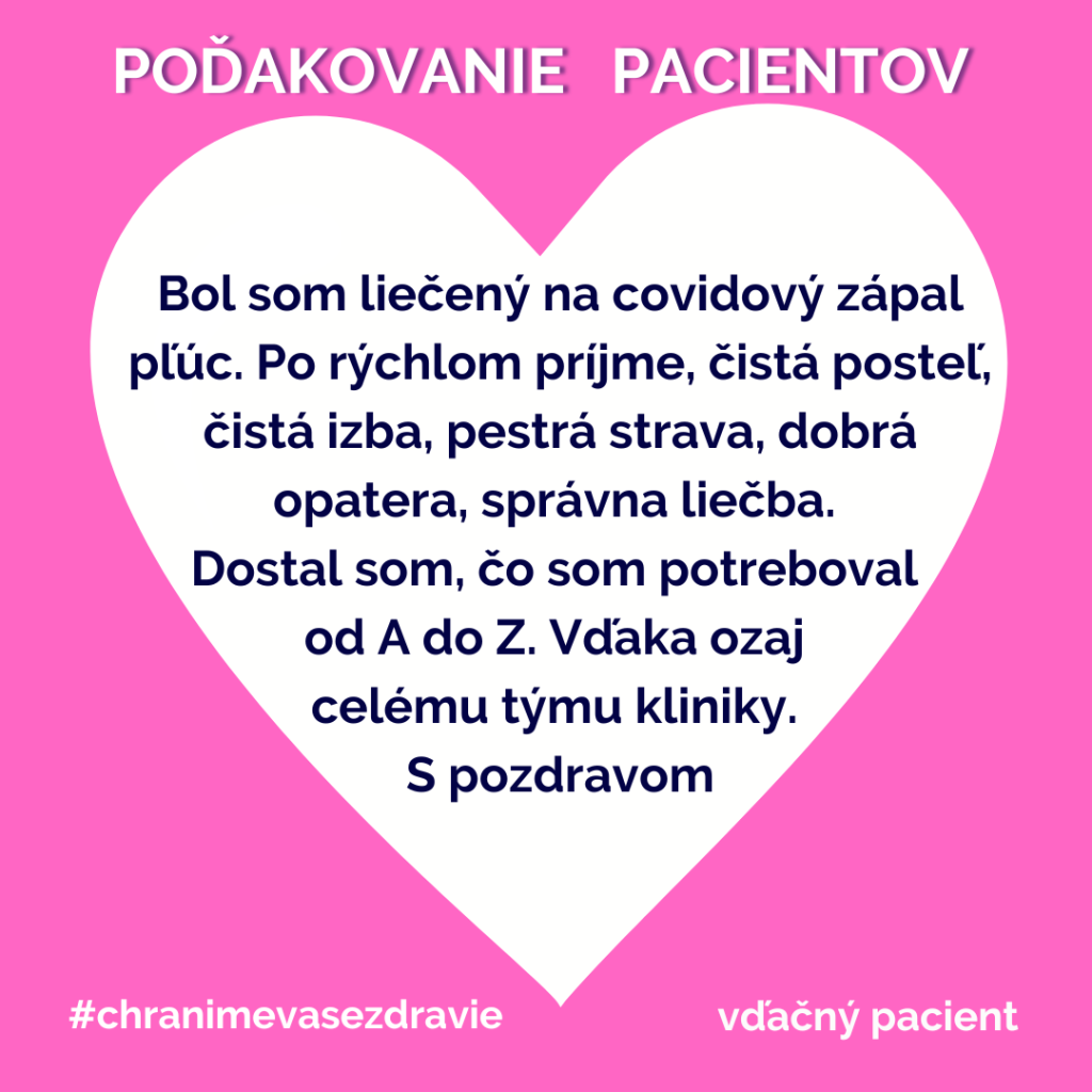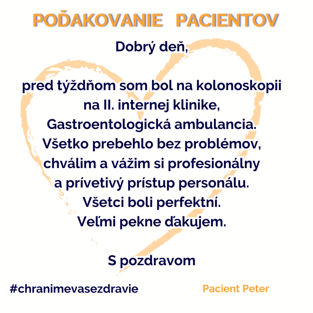 POĎAKOVANIE pre II. internú kliniku, Tr. SNP1.