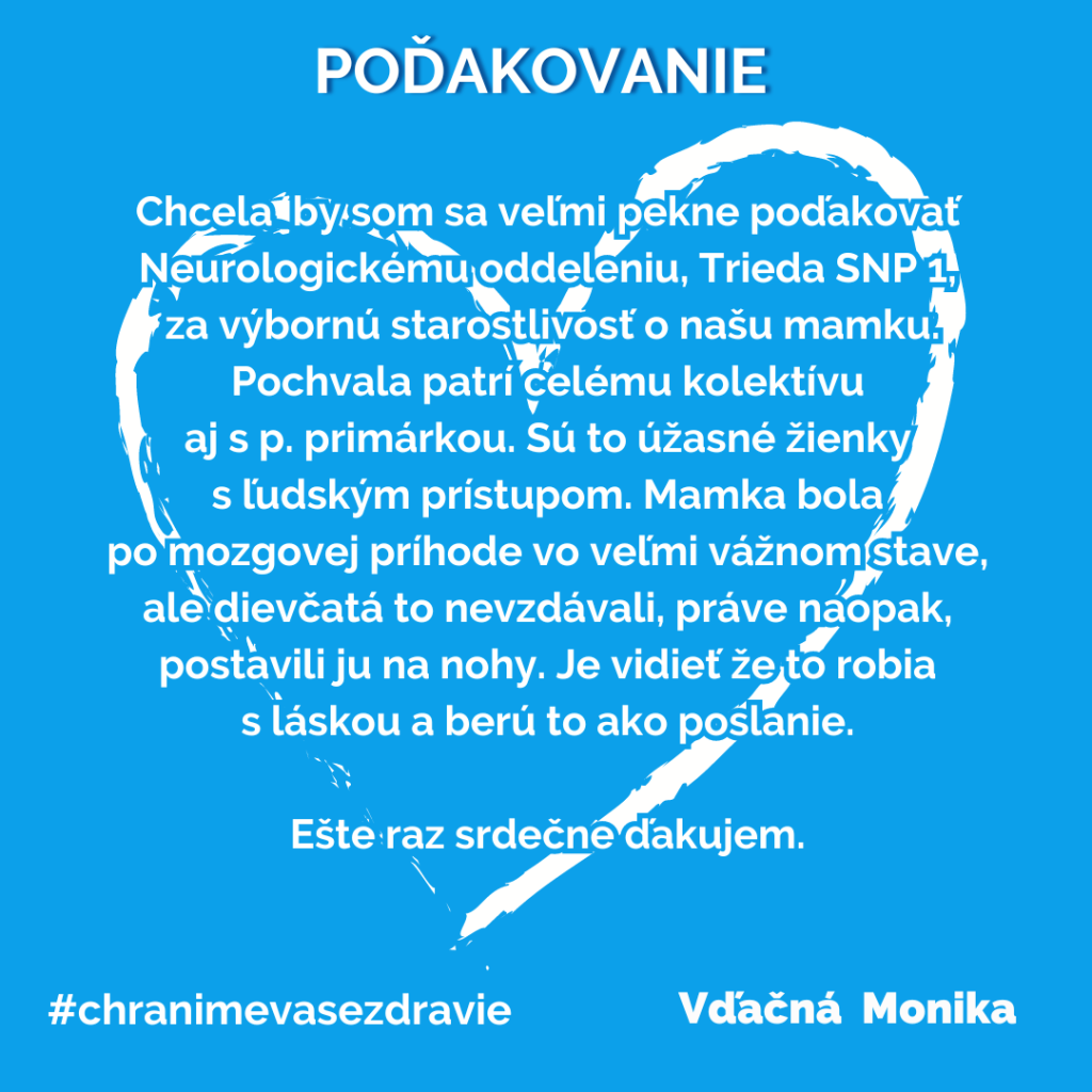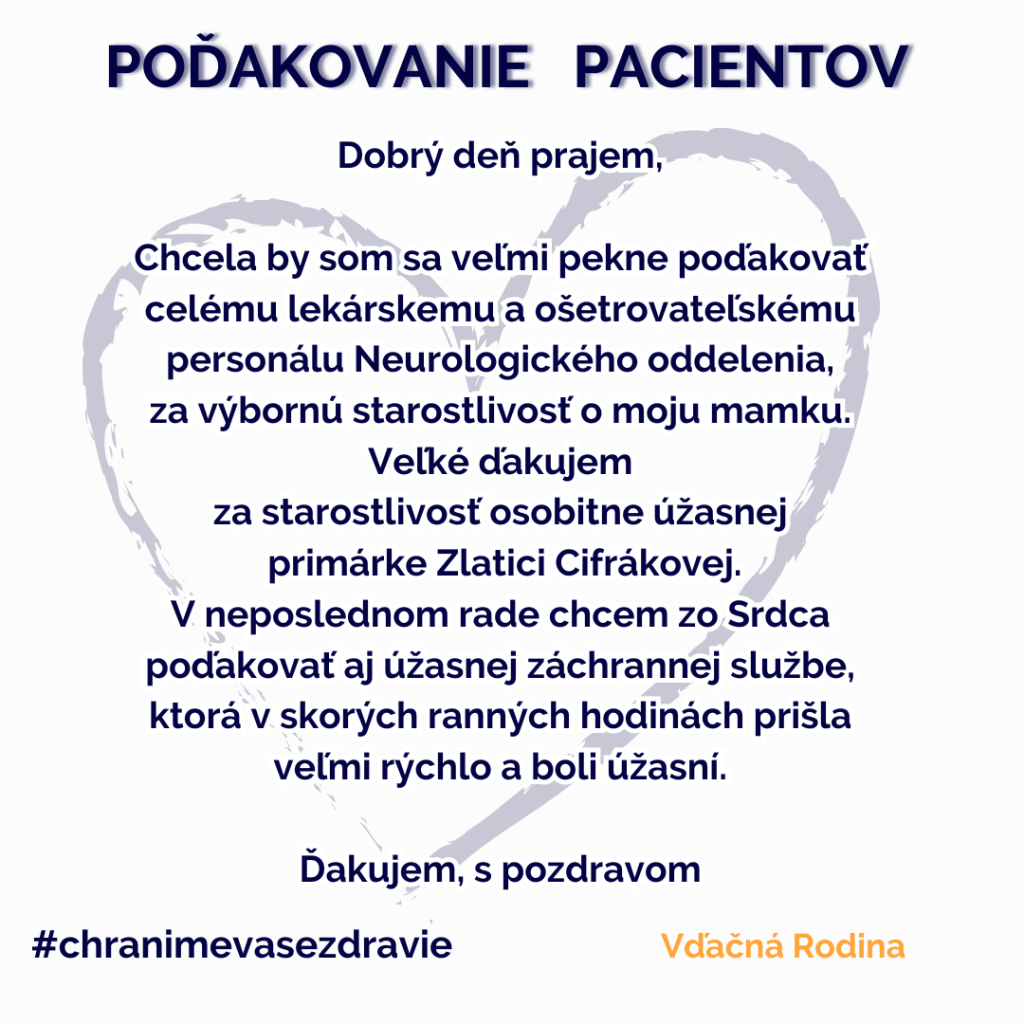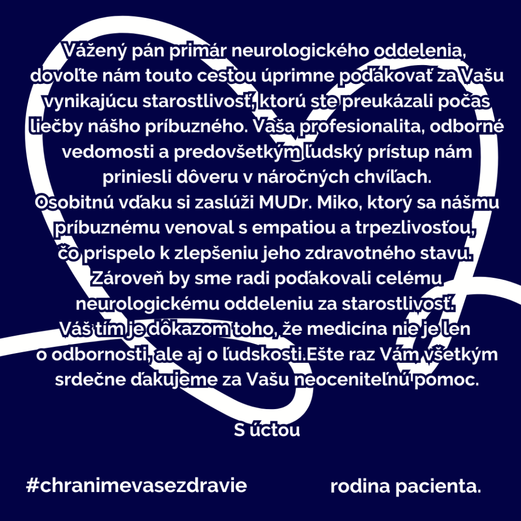 POĎAKOVANIE pre Neurologické oddelenie, Rastislavova 43