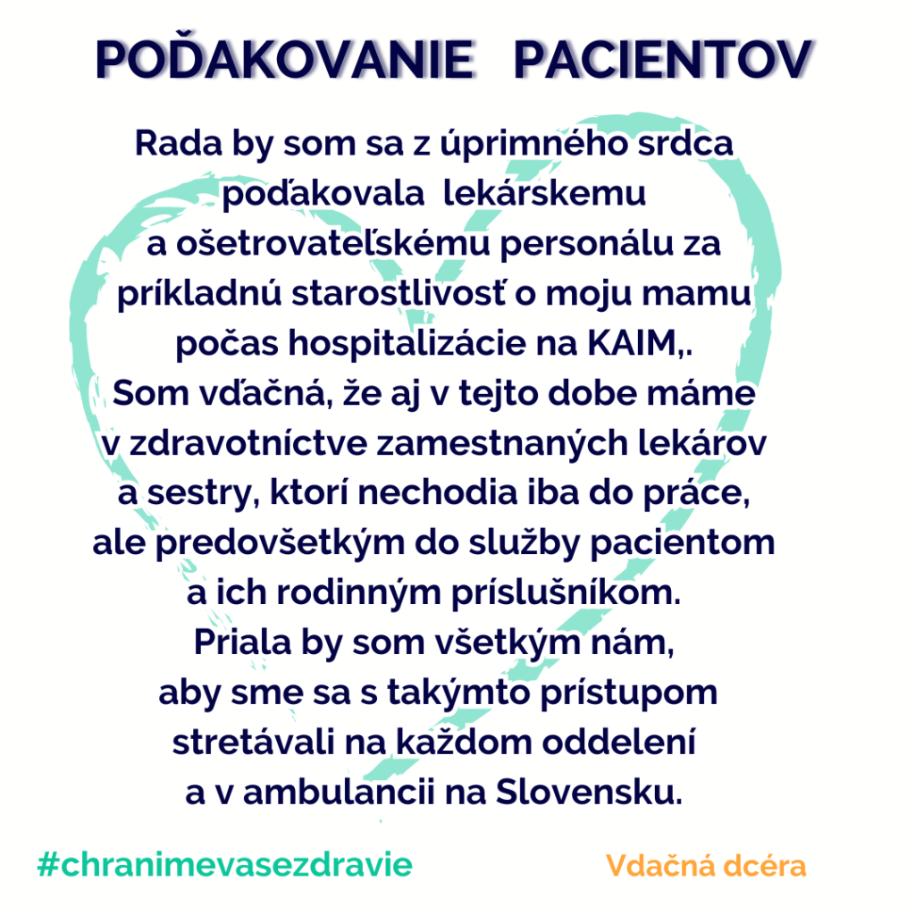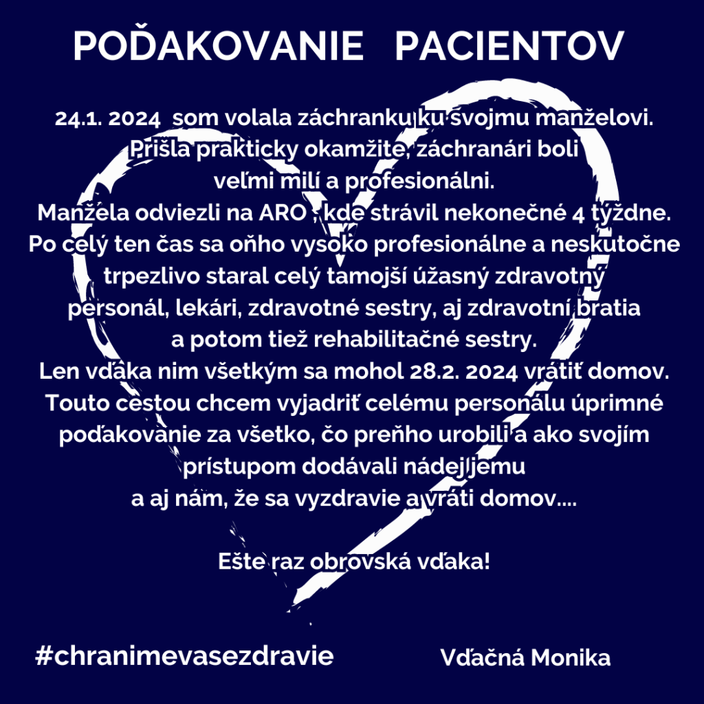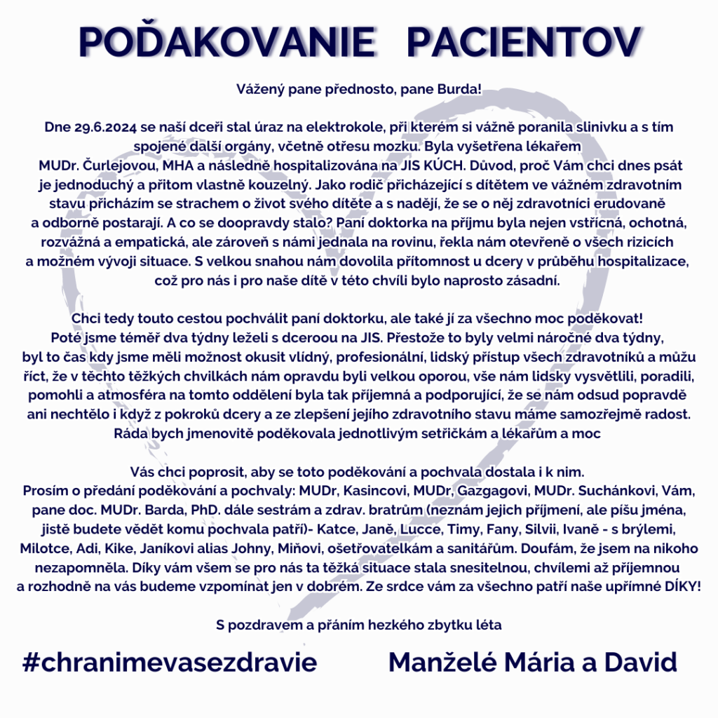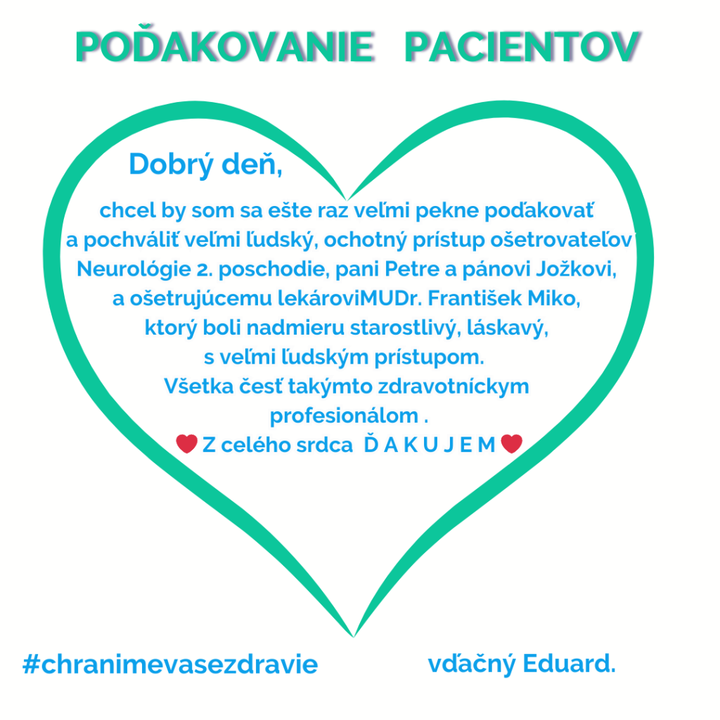 POĎAKOVANIE pre Neurologické oddelenie, Rastislavova 43