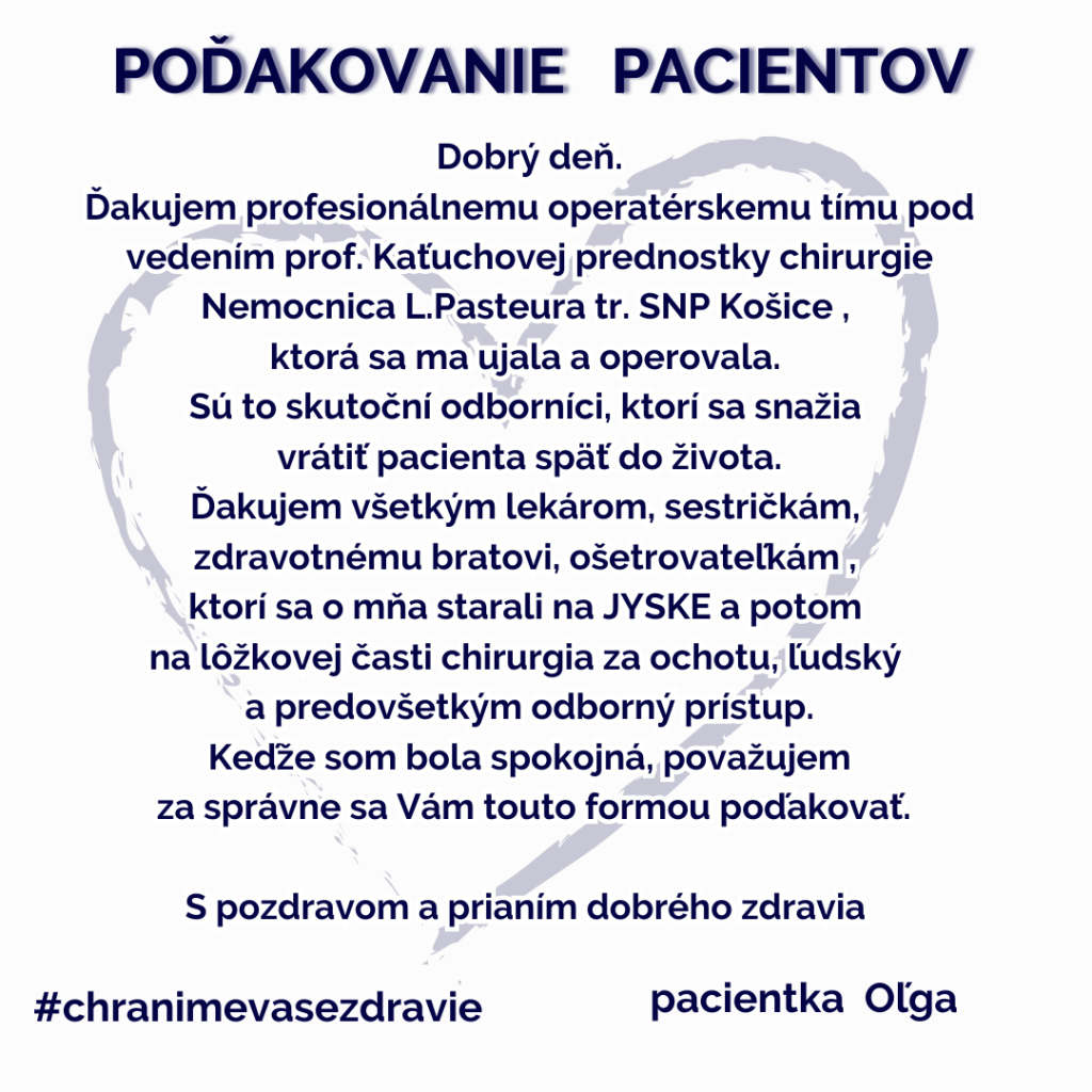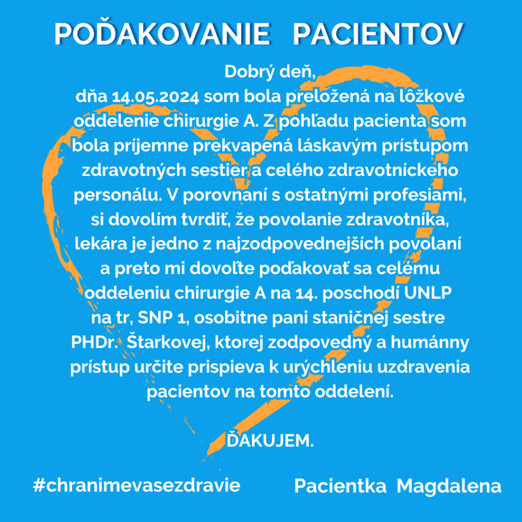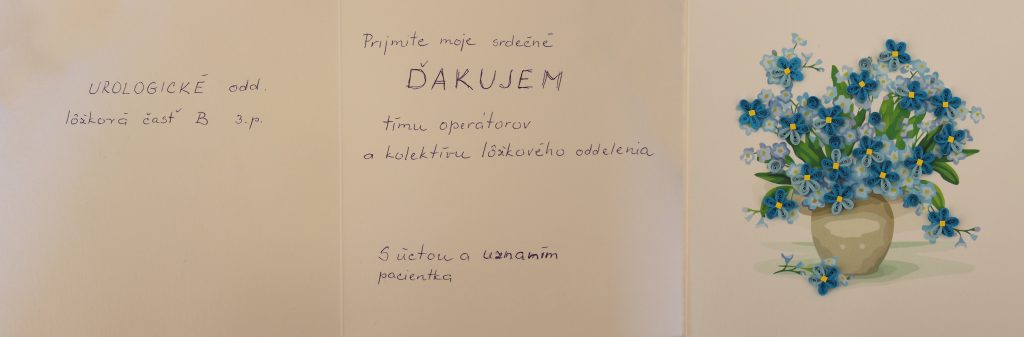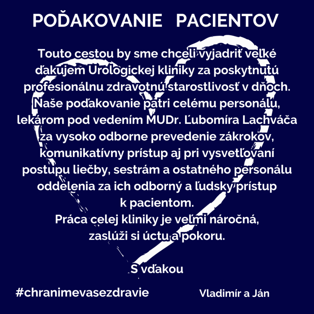 POĎAKOVANIE pre Urologické oddelenie, Rastislavova 43