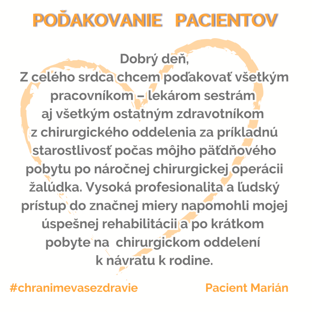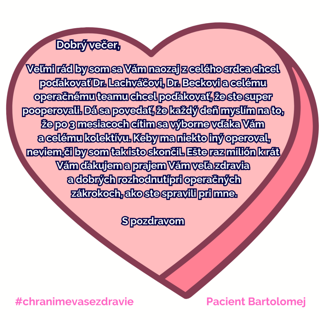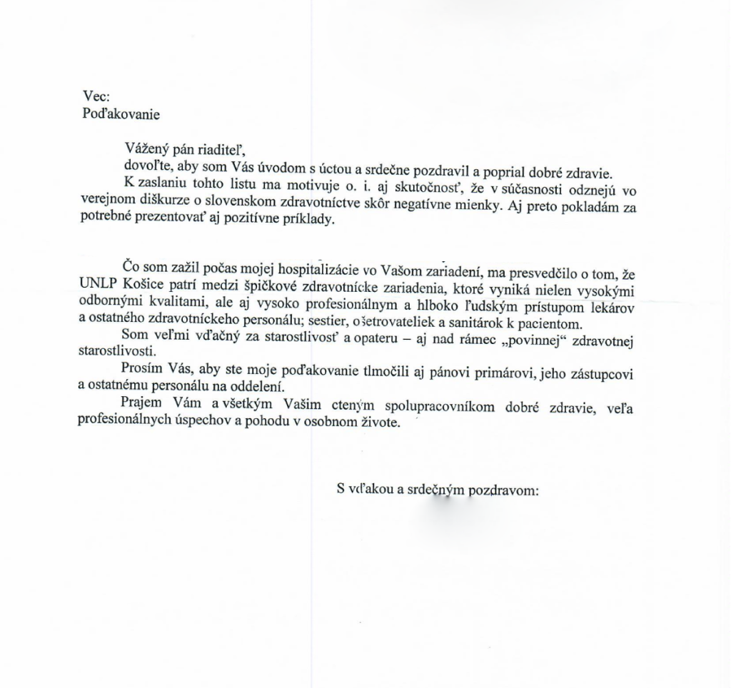 POĎAKOVANIE pre Urologické oddelenie, Rastislavova 43