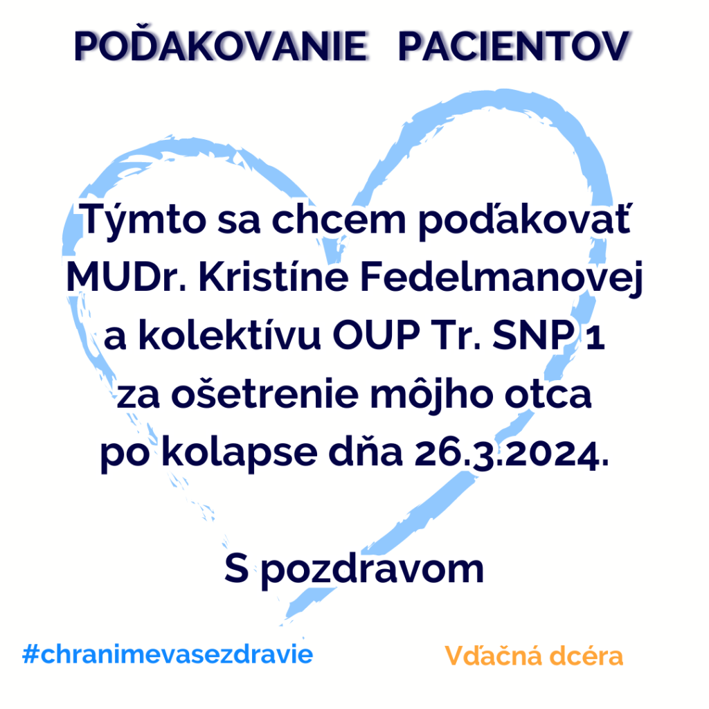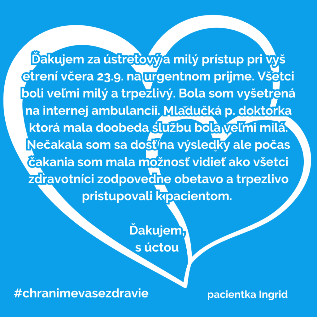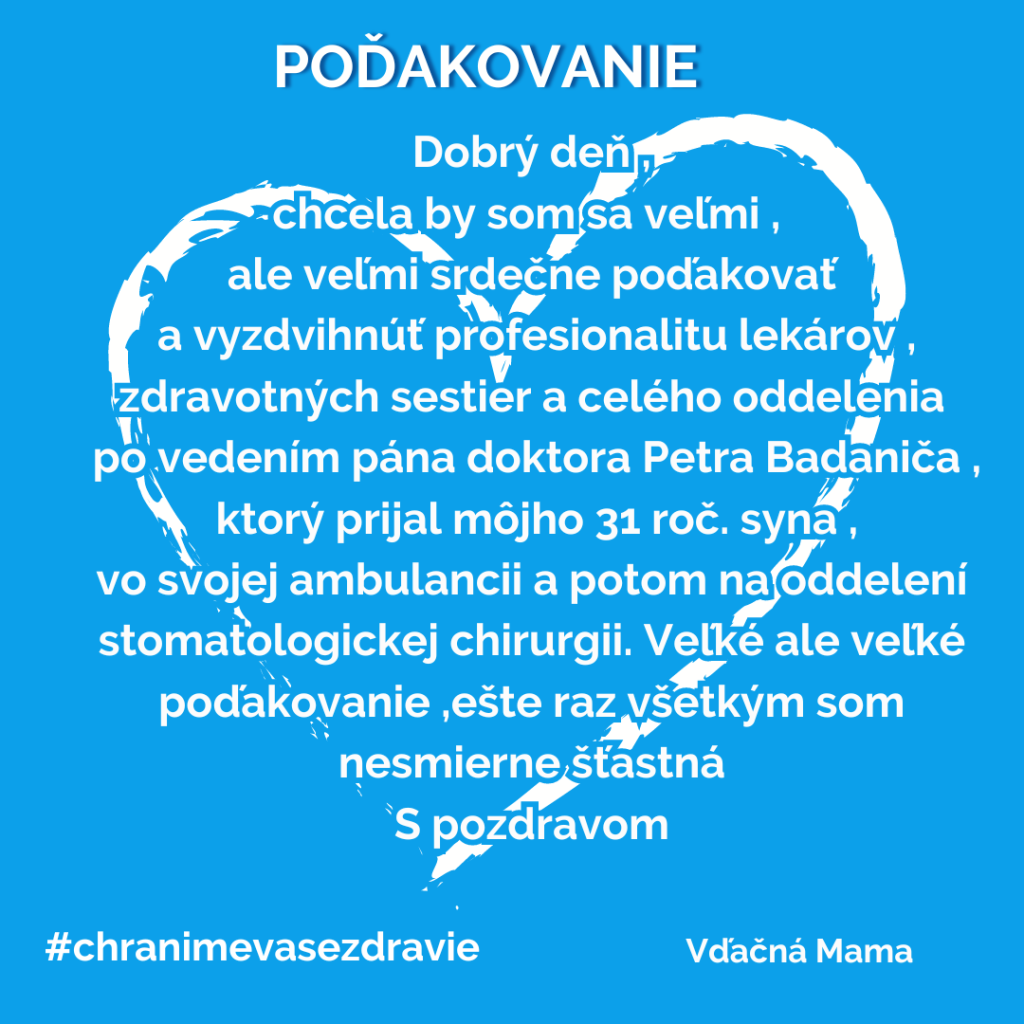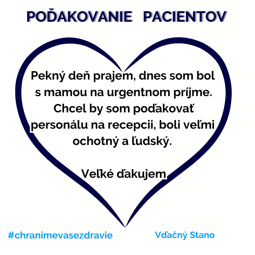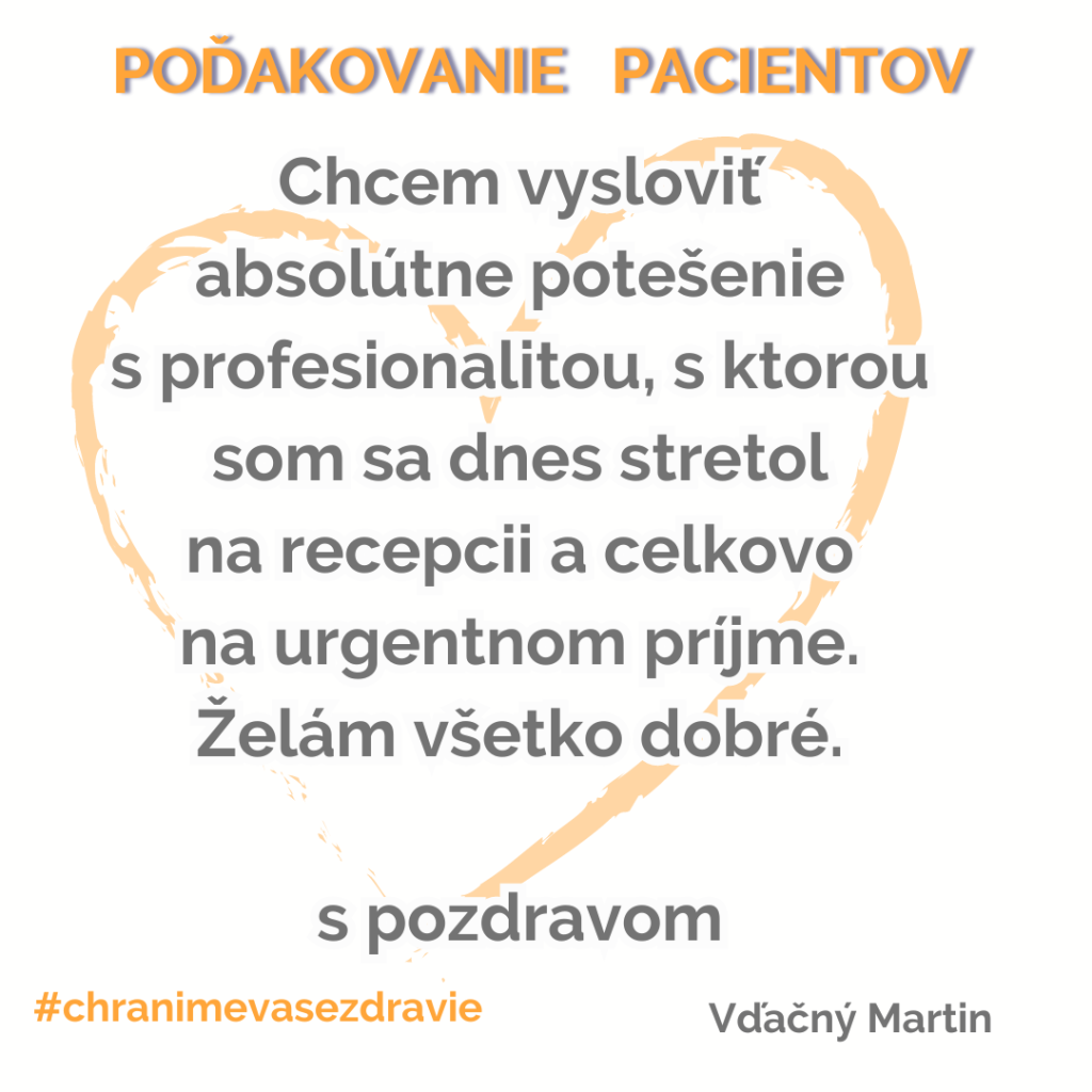 POĎAKOVANIE pre Oddelenie urgentného príjmu Tr. SNP 1.