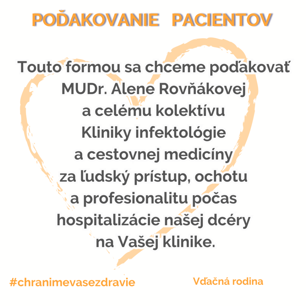 POĎAKOVANIE pre Kliniku infektológie a cestovnej medicíny, Rastislavova 43.
