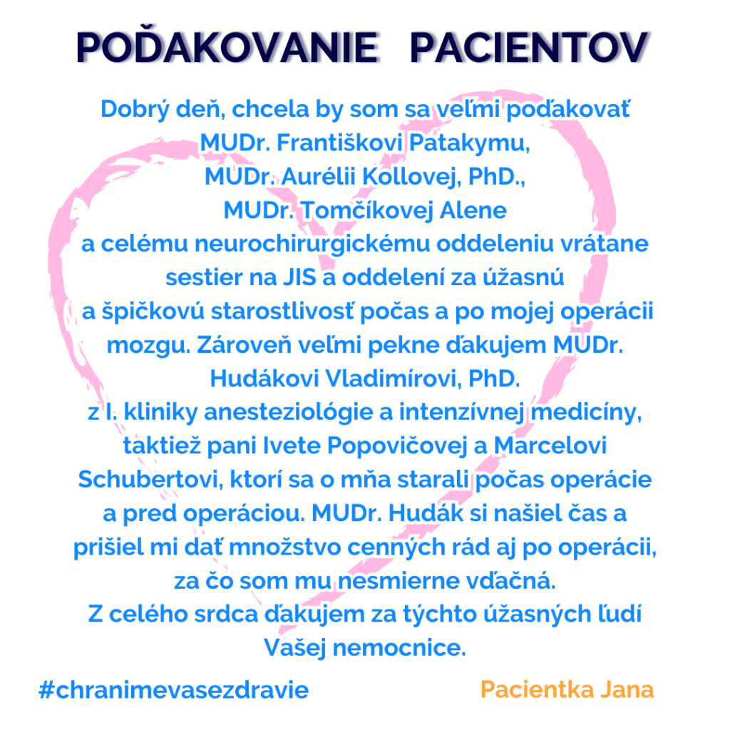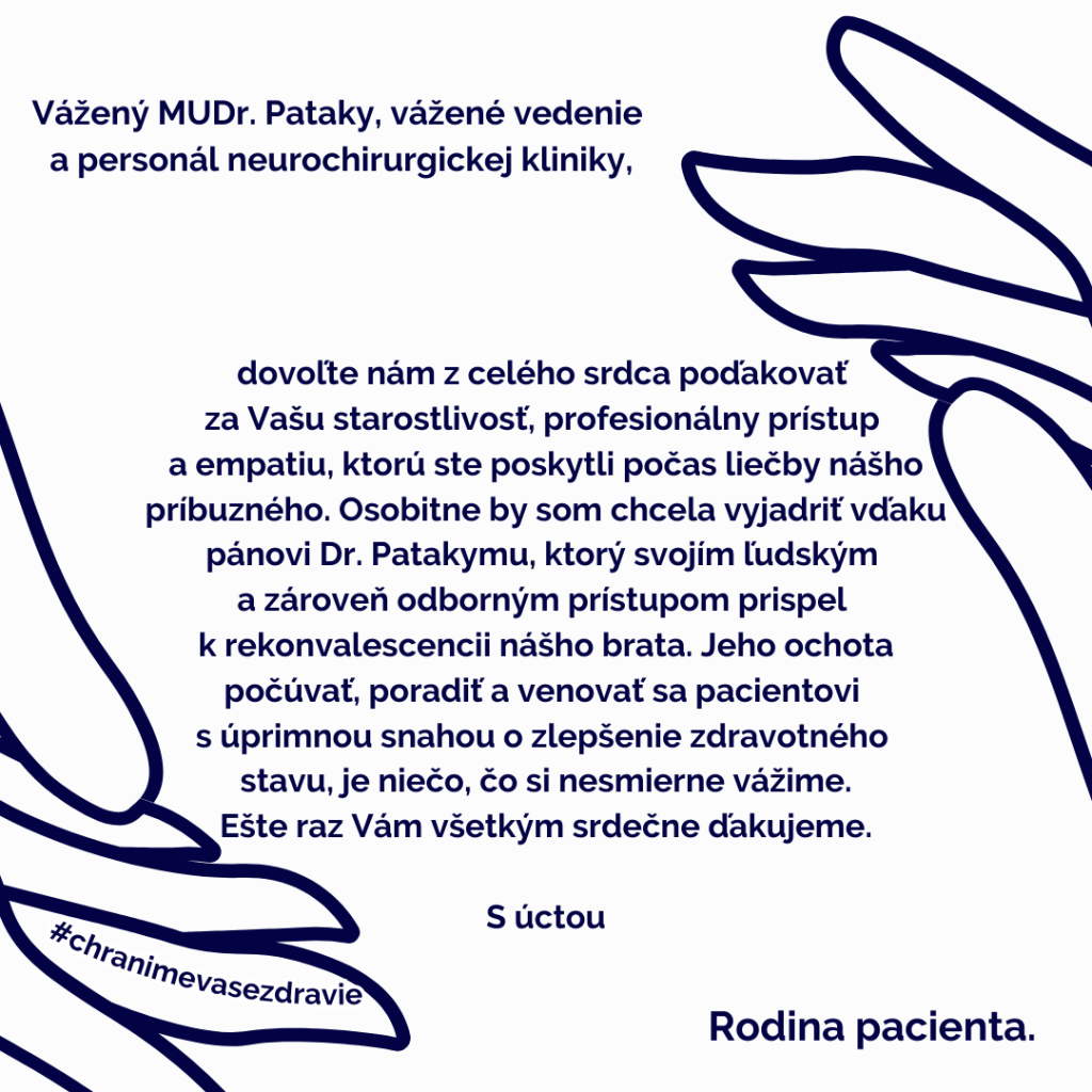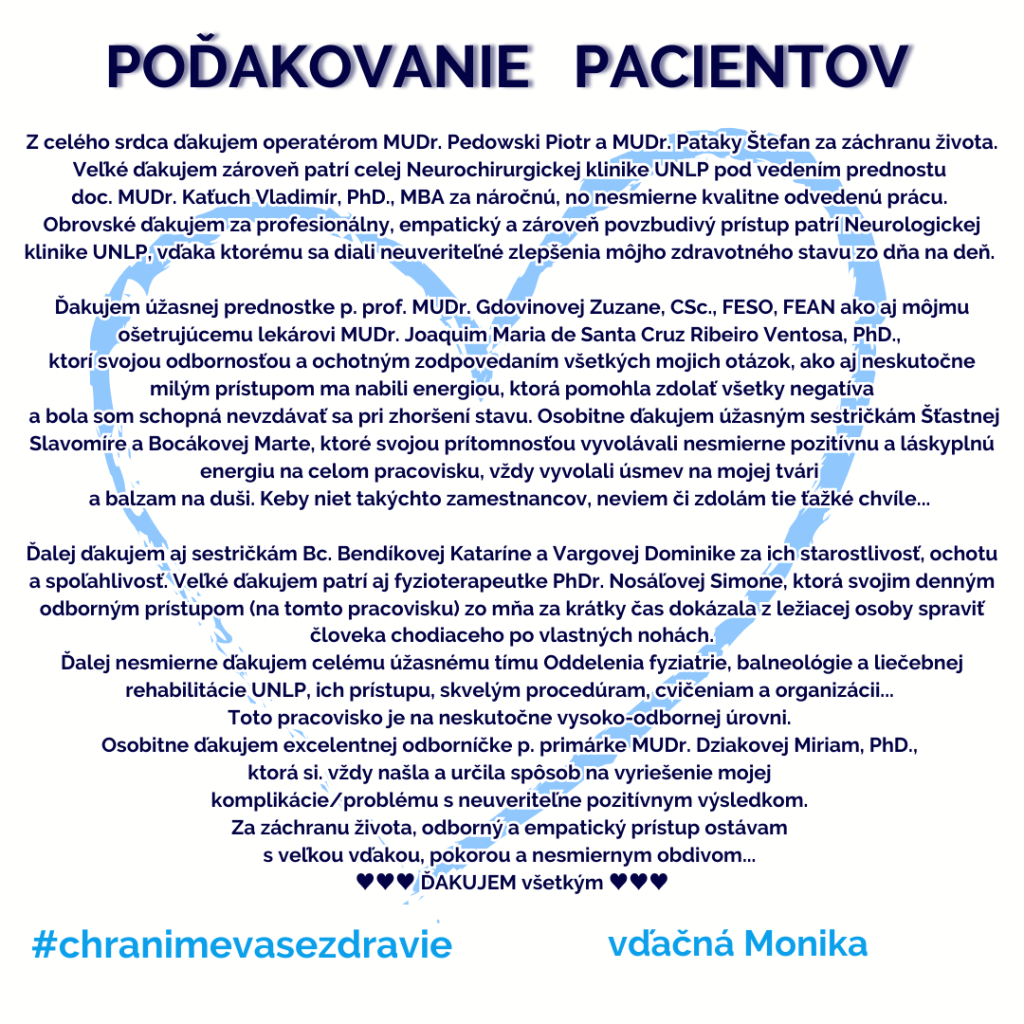 POĎAKOVANIE pre Neurochirurgickú kliniku, Tr. SNP 1.