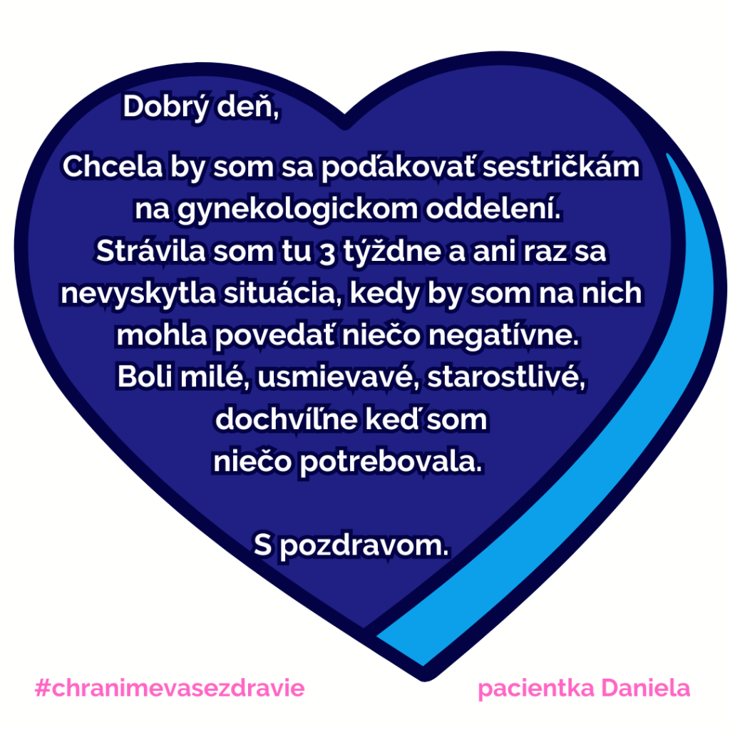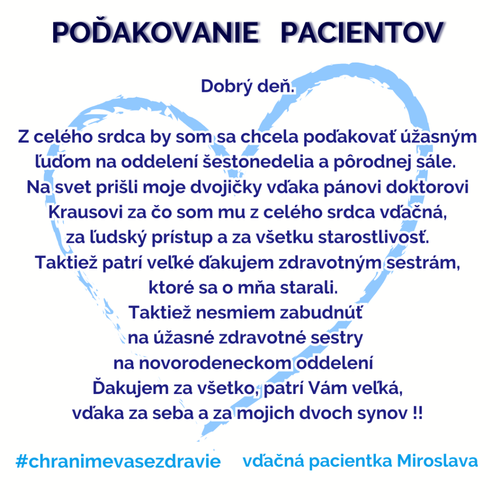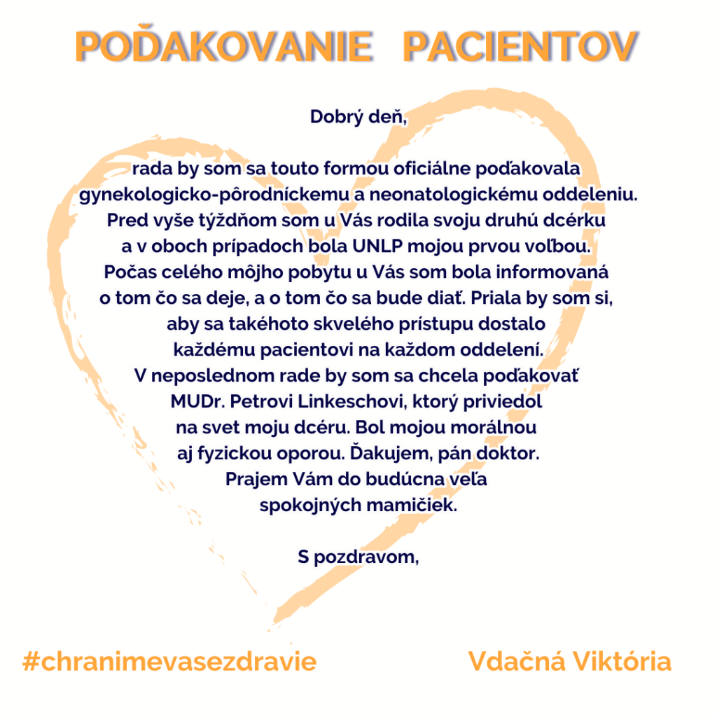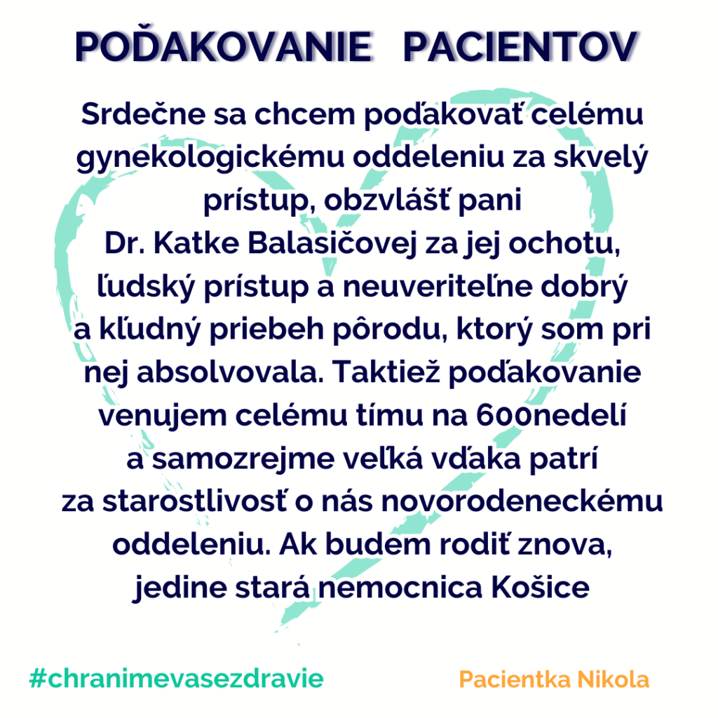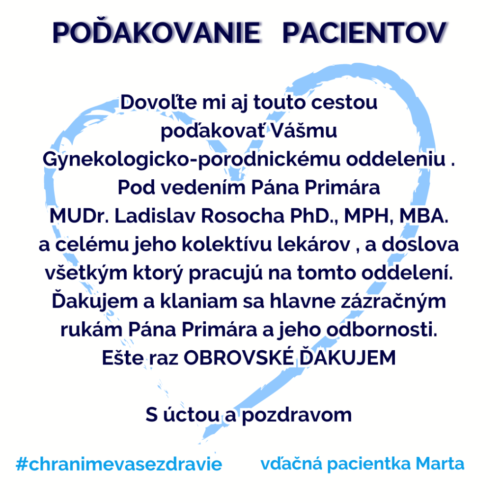 POĎAKOVANIE pre Gynekologicko-pôrodnícke oddelenie, Rastislavova 43