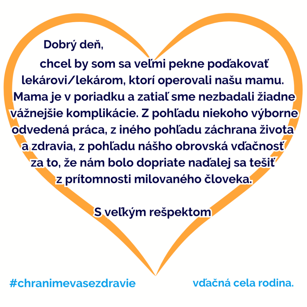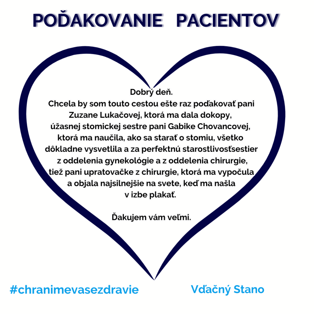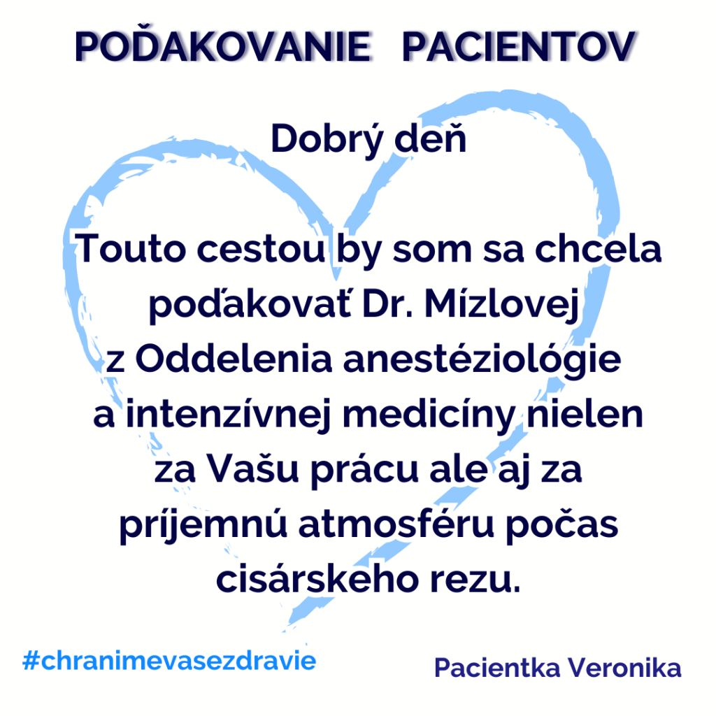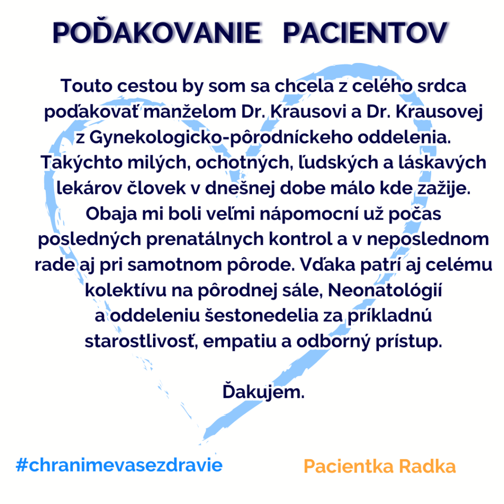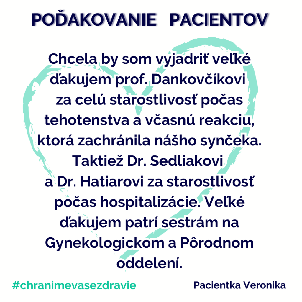 POĎAKOVANIE pre Gynekologicko-pôrodnícke oddelenie, Rastislavova 43