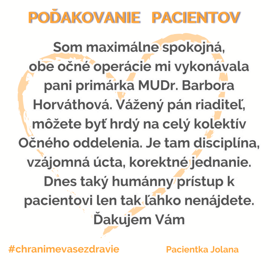 POĎAKOVANIE pre Očné oddelenie, Rastislavova 43