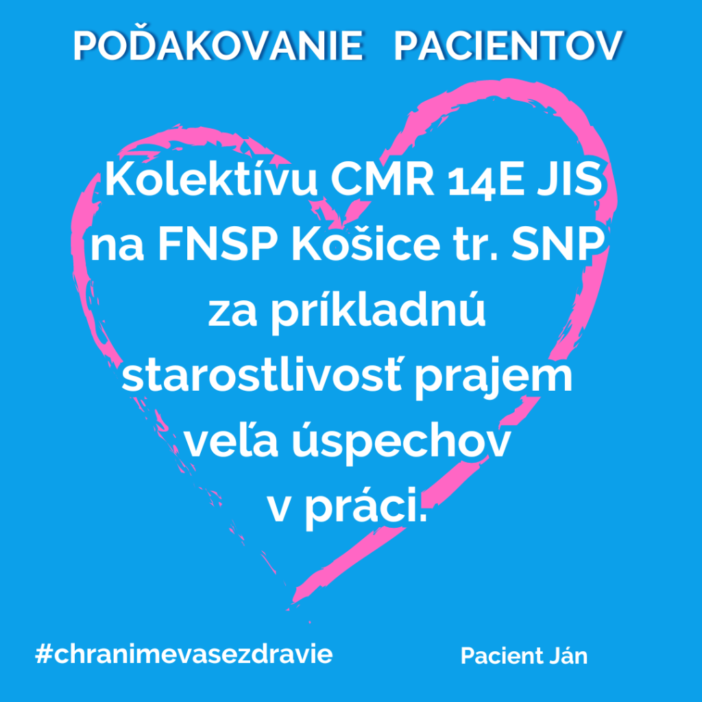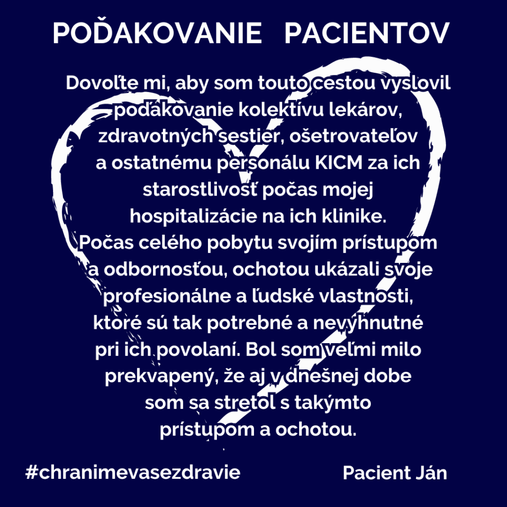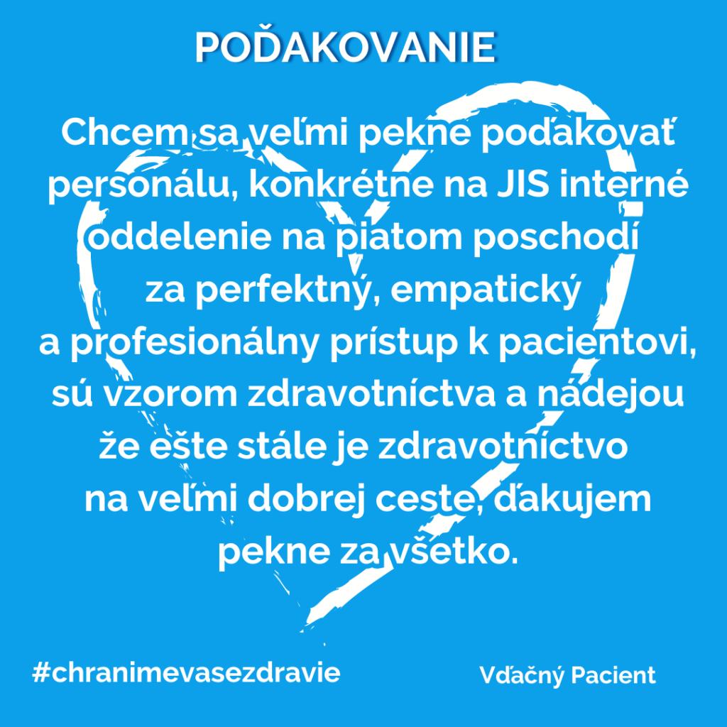 POĎAKOVANIE pre IV. internú kliniku, Rastislavova 43.