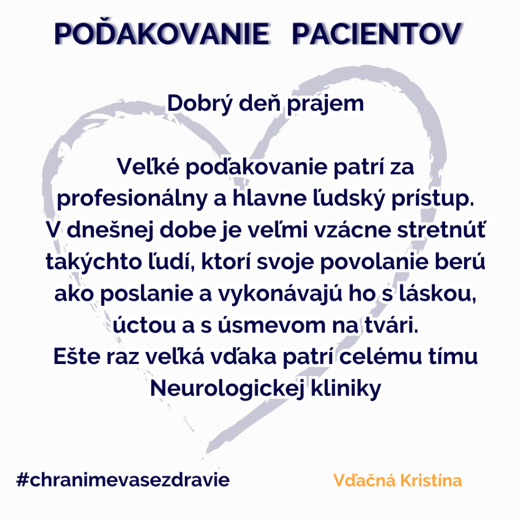 POĎAKOVANIE pre Neurologickú kliniku, Tr. SNP 1.