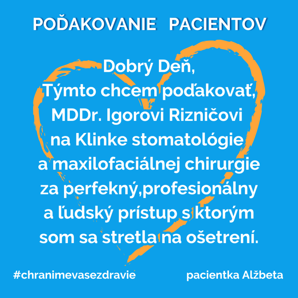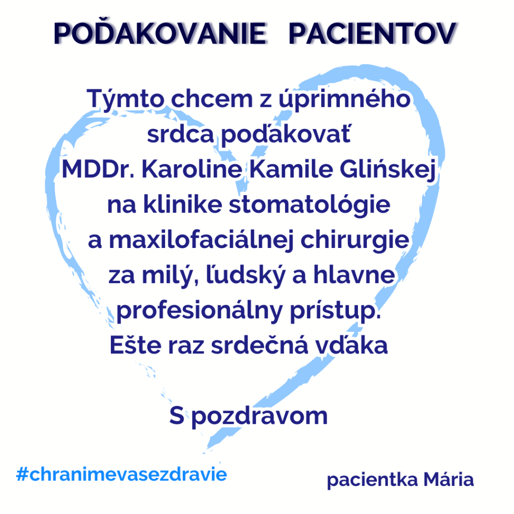POĎAKOVANIE pre Kliniky stomatológie a maxilofaciálnej chirurgie, Rastislavova 43.