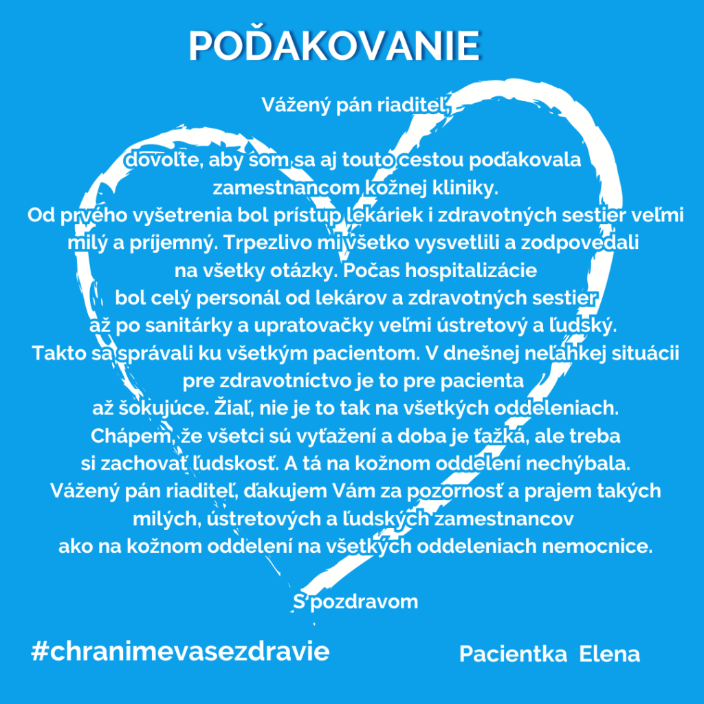 POĎAKOVANIE pre Kliniku dermatovenerológie, Tr. SNP 1.
