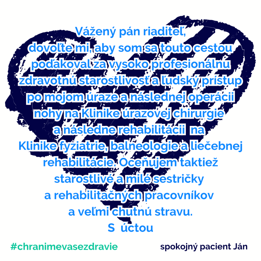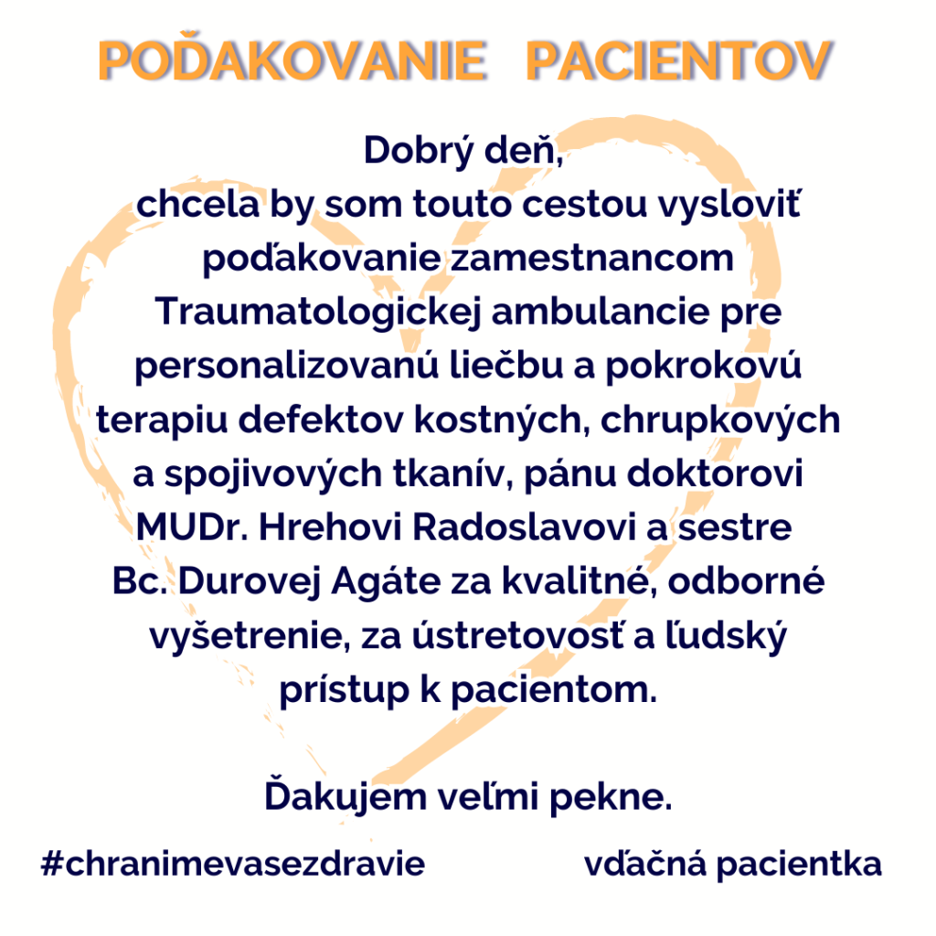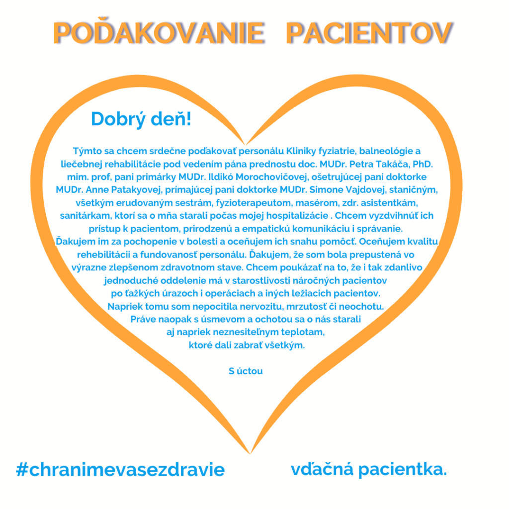 POĎAKOVANIE pre Kliniku úrazovej chirurgie a Klinike fyziatrie, balneológie a liečebnej rehabilitácie, Rastislavova 43.