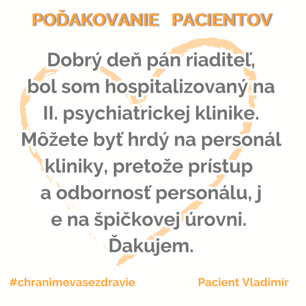 POĎAKOVANIE pre II. psychiatrickú kliniku, Rastislavova 43