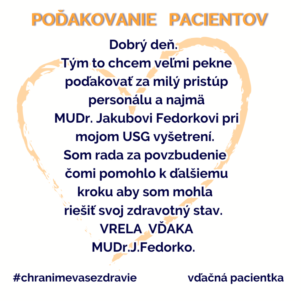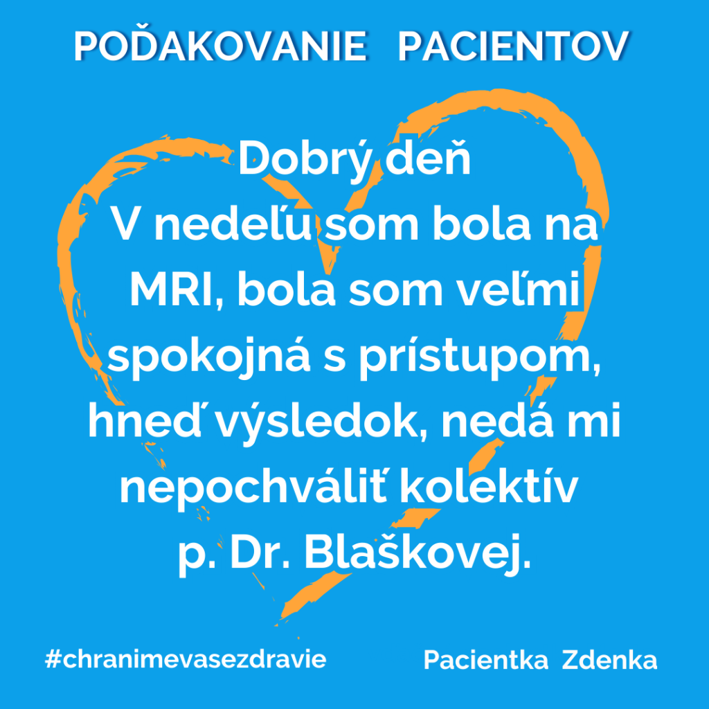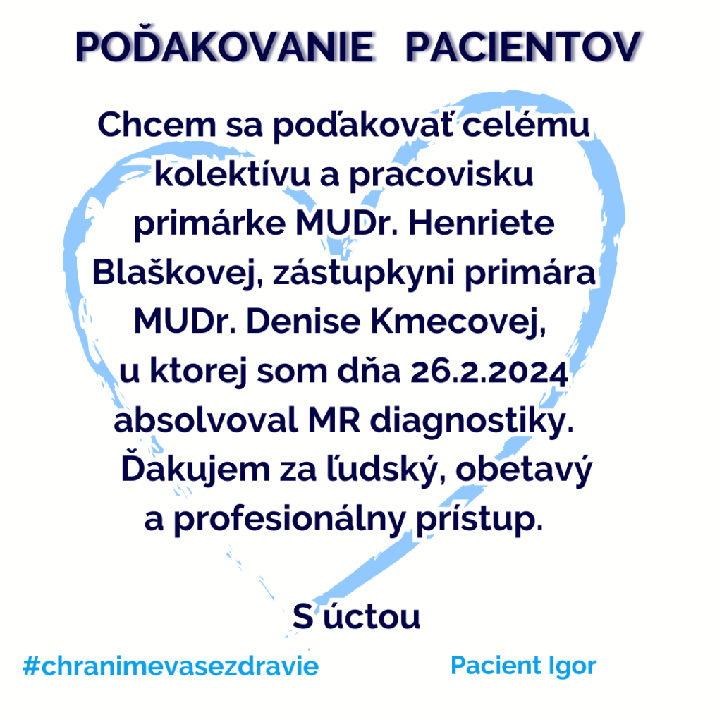 POĎAKOVANIE pre Oddelenie rádiodiagnostiky a zobrazovacích metód, Rastislavova 43