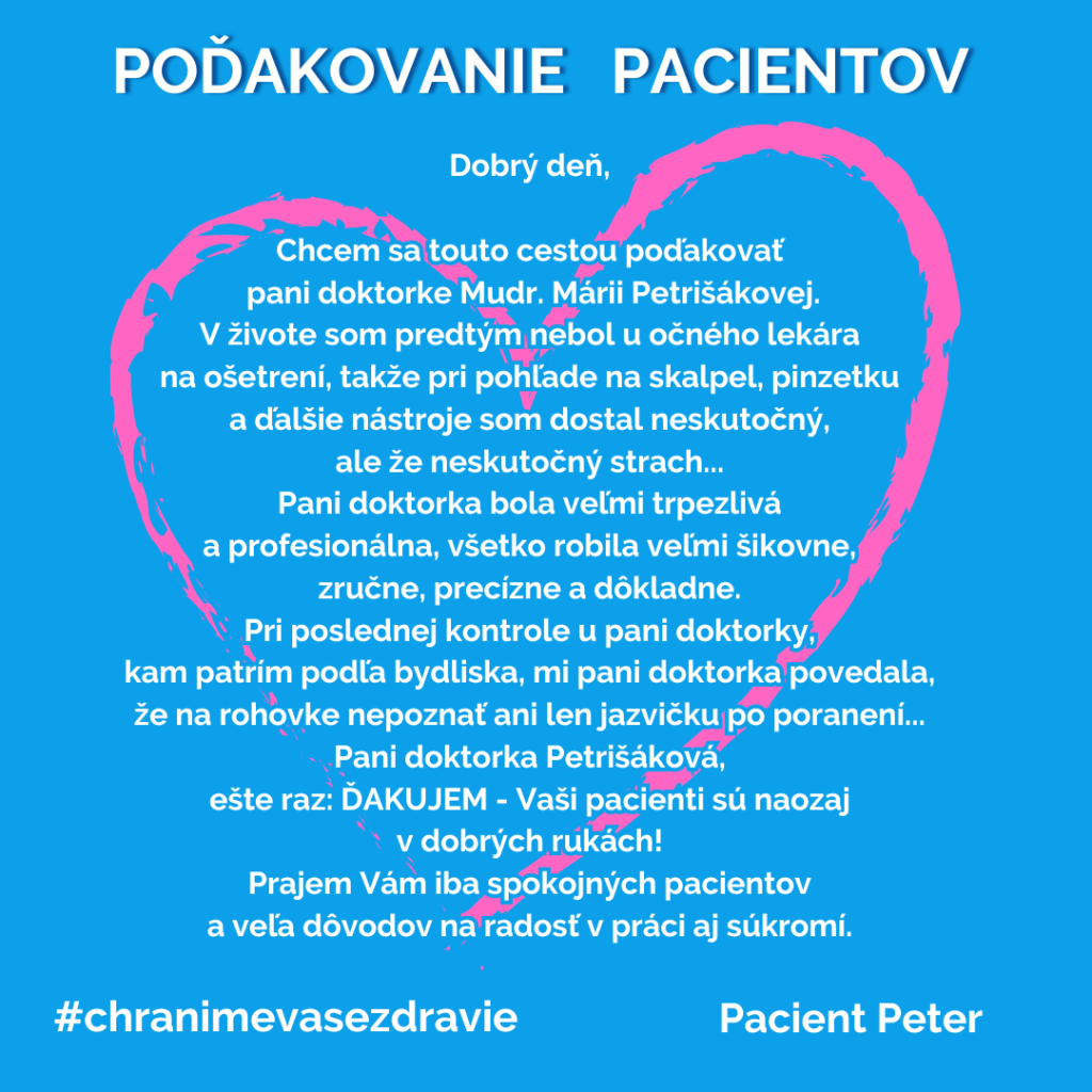 POĎAKOVANIE pre Očnú kliniku, Tr. SNP 1.