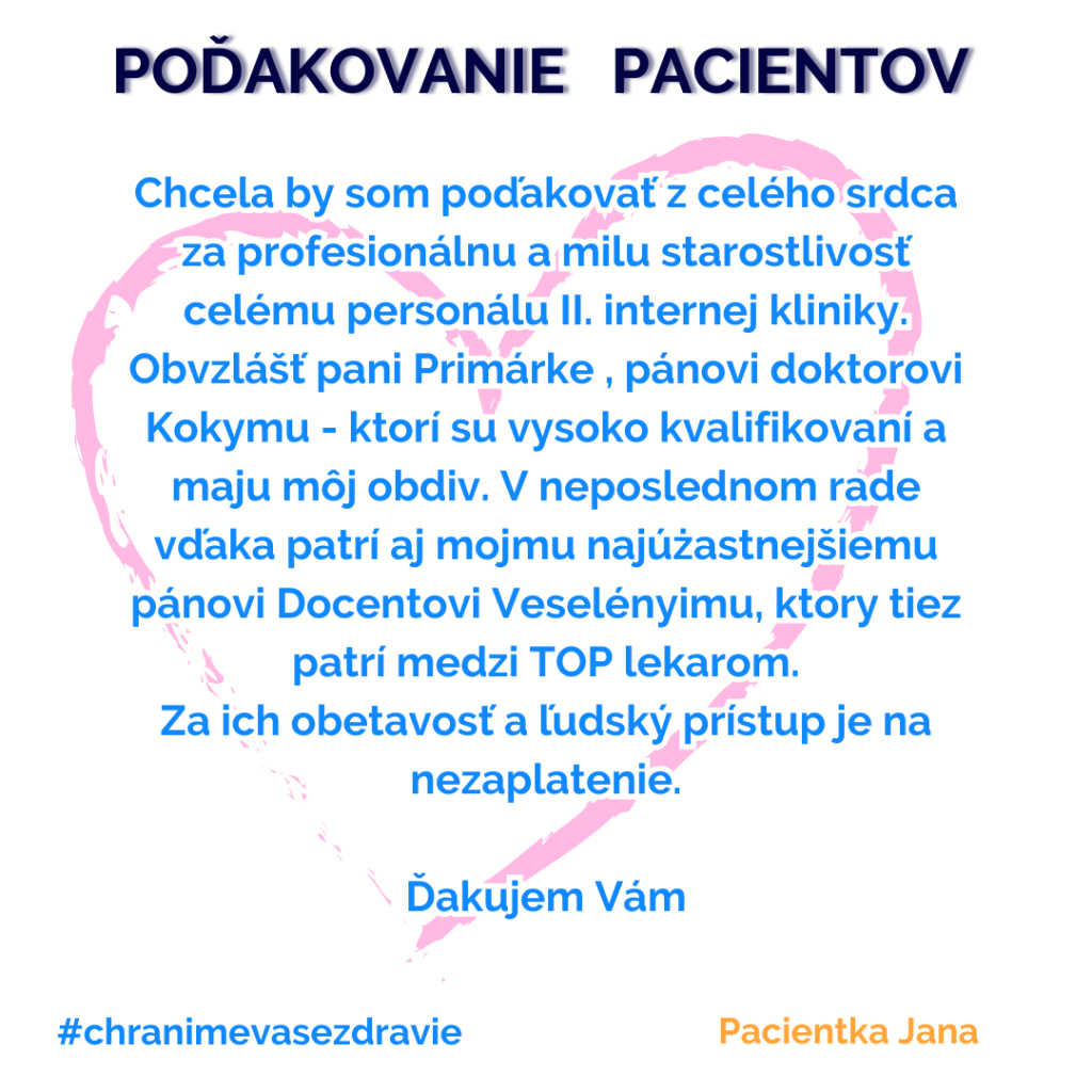POĎAKOVANIE pre II. internú kliniku, Tr. SNP 1.