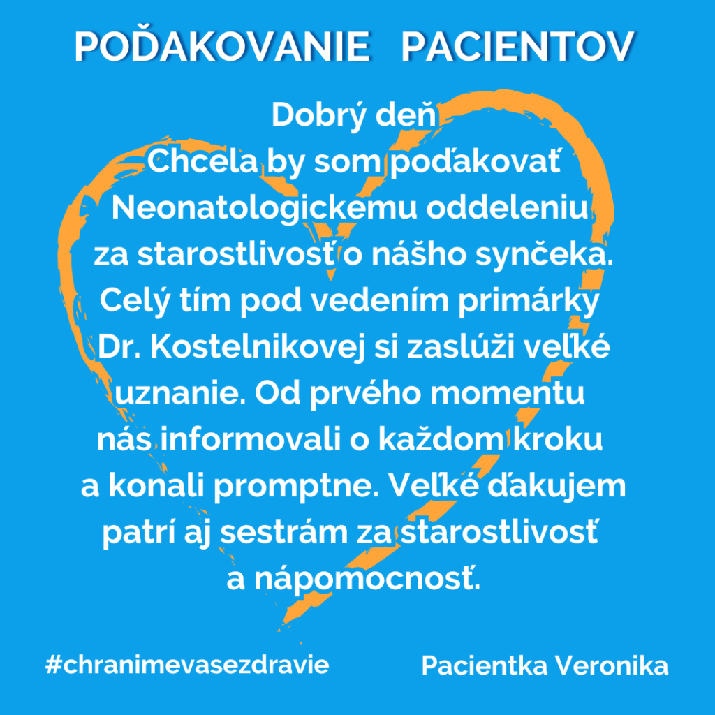 POĎAKOVANIE pre Neonatologické oddelenie, Rastislavova 43
