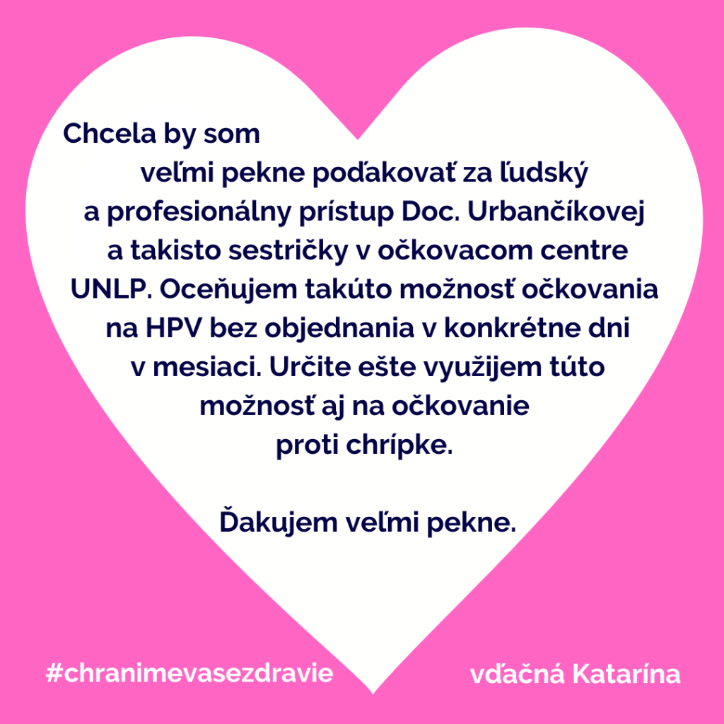 POĎAKOVANIE pre Očkovacie centrum, Rastislavova 43.