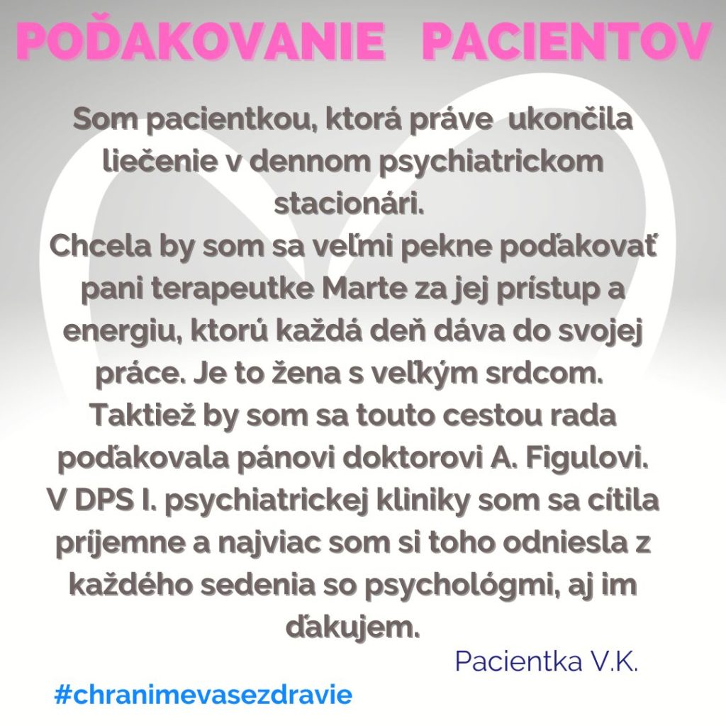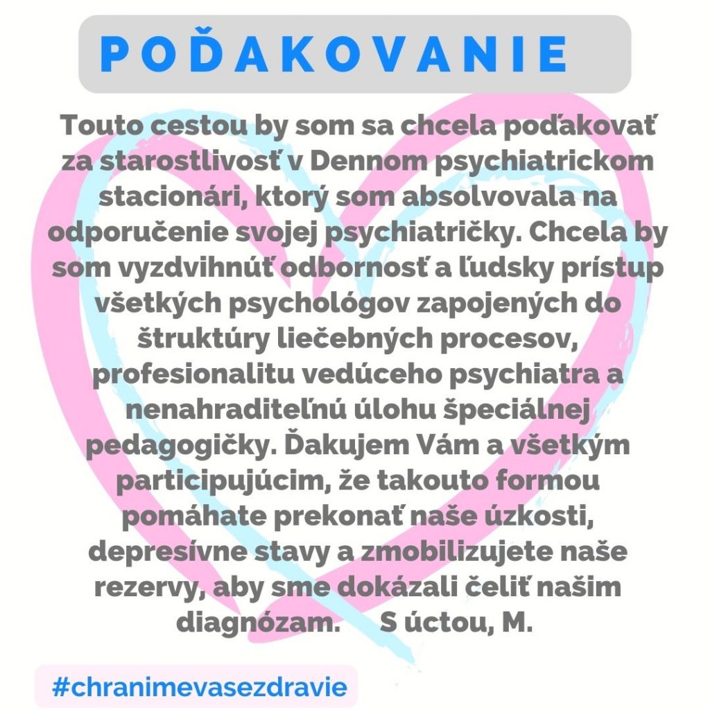 POĎAKOVANIE  pre Denný psychiatrický stacionár, I. psychiatrická klinika, Tr. SNP1.