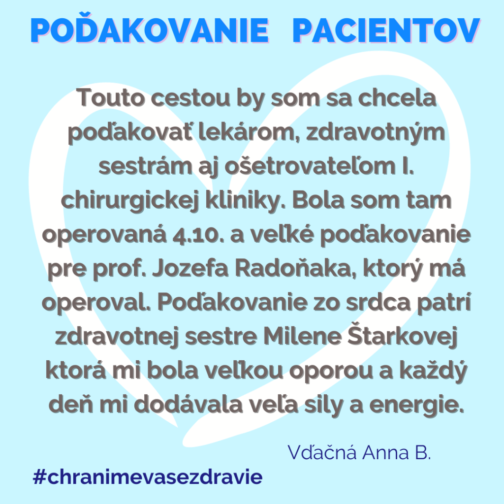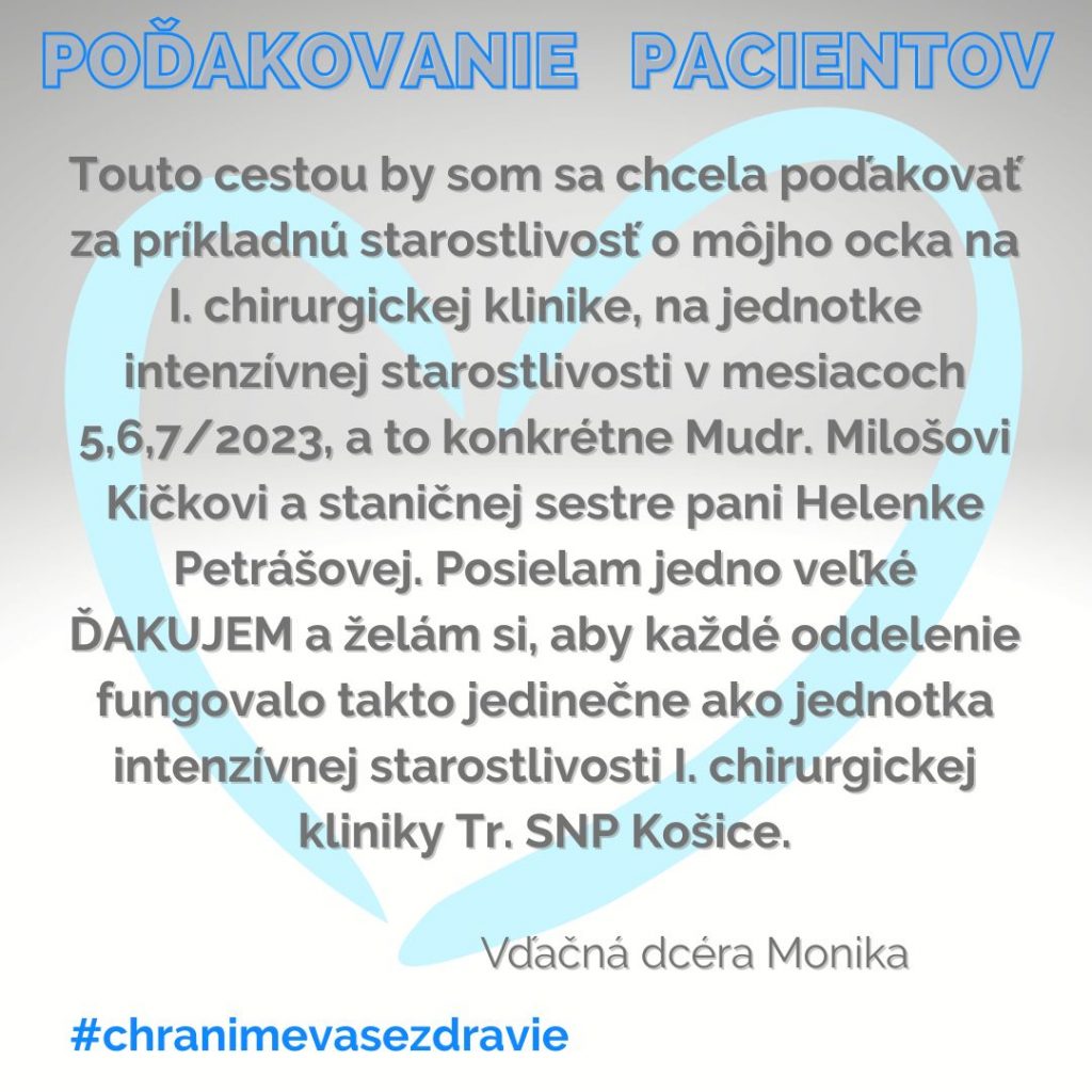 POĎAKOVANIE  pre I. chirurugickú kliniku, Tr. SNP 1.