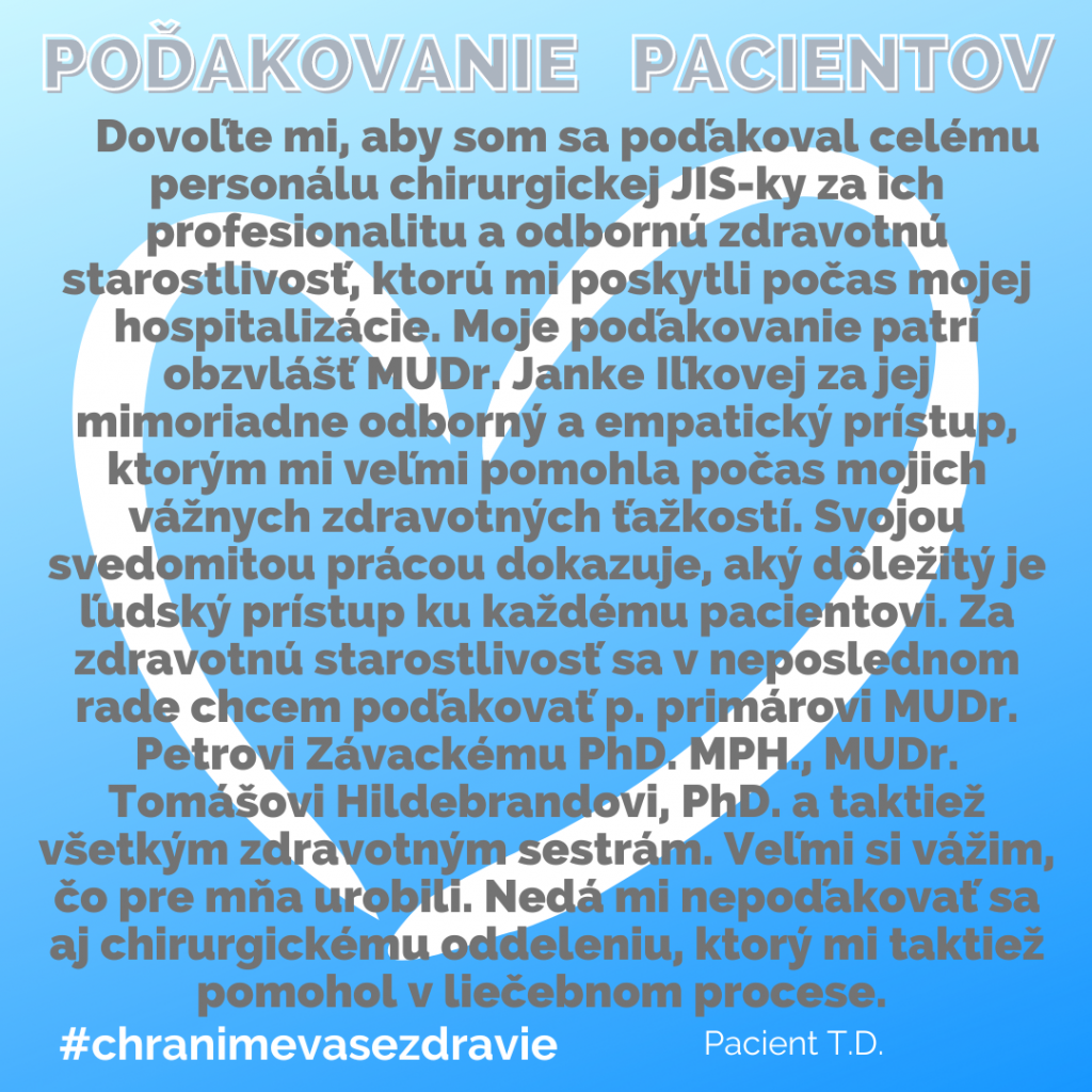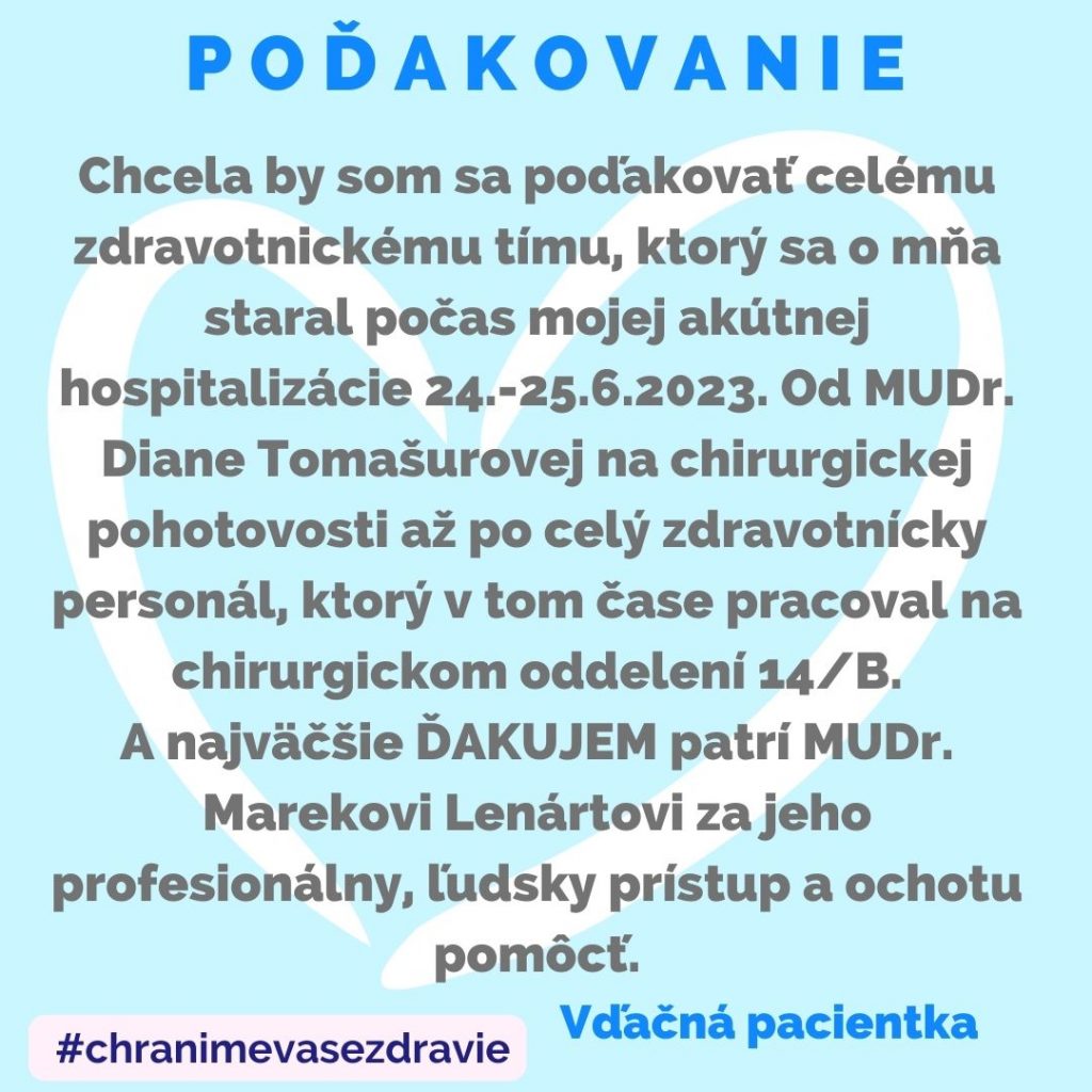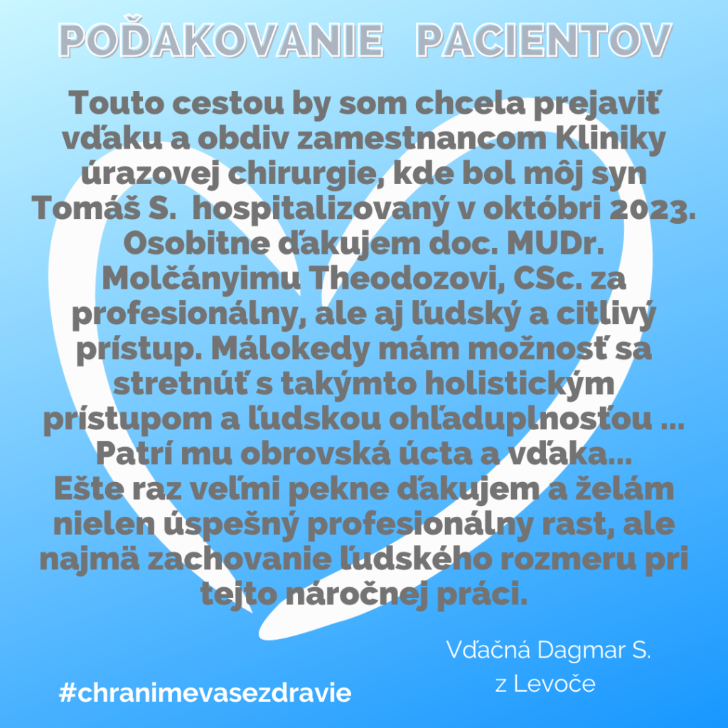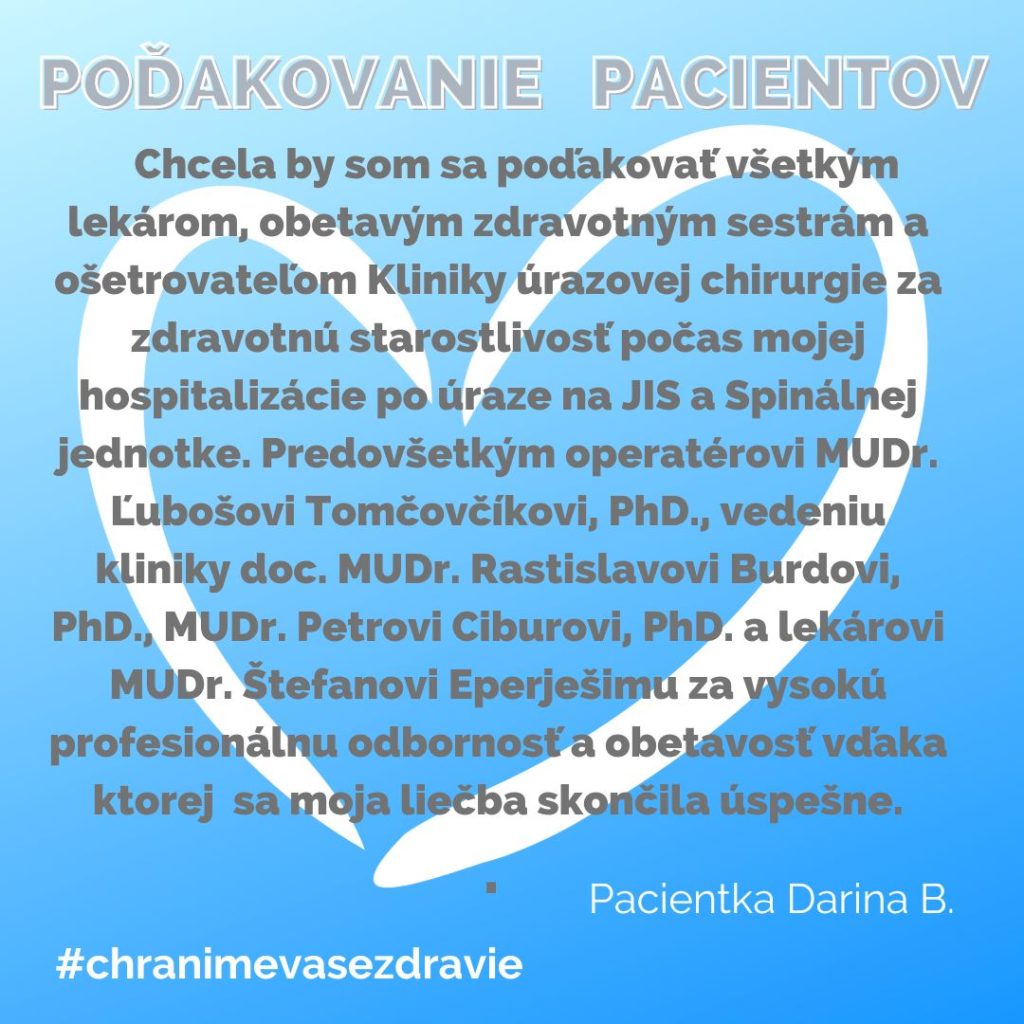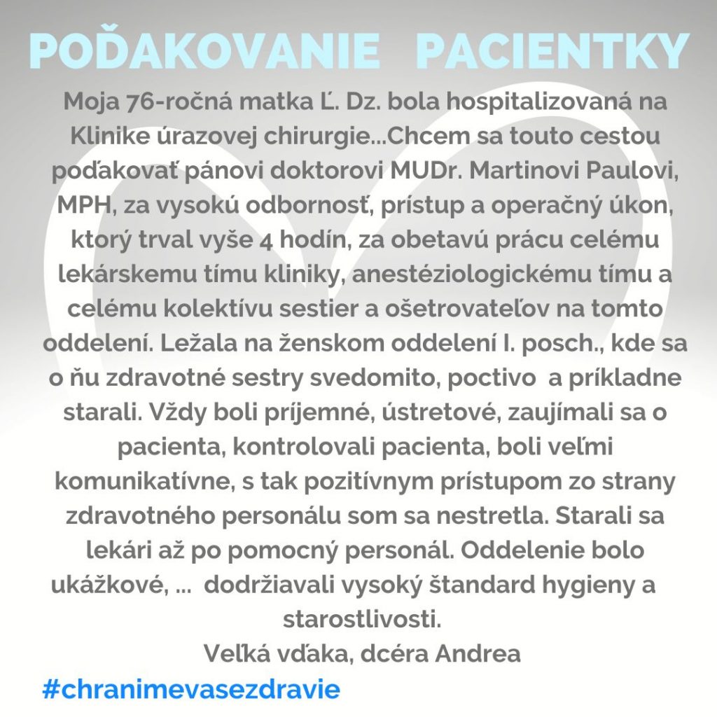 POĎAKOVANIE  pre Kliniku úrazovej chirurgie, Rastislavova 43.