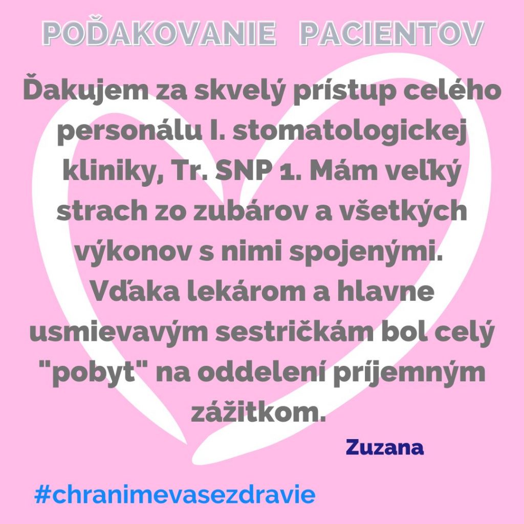 POĎAKOVANIE  pre I. stomatologickú kliniku, Tr. SNP 1.