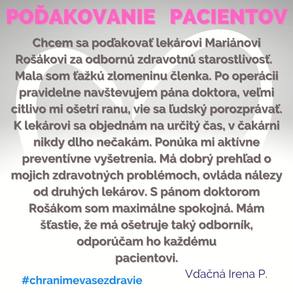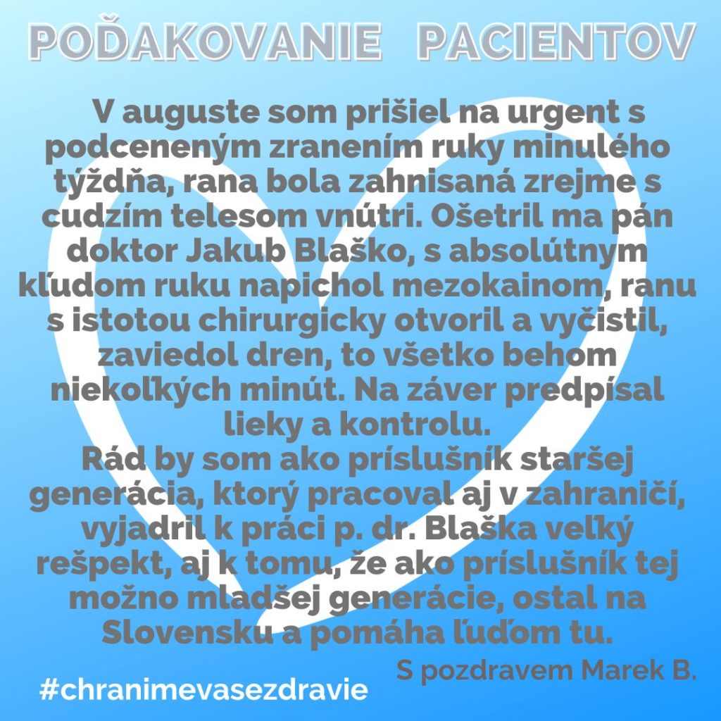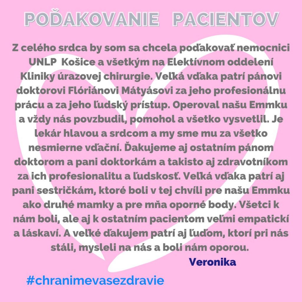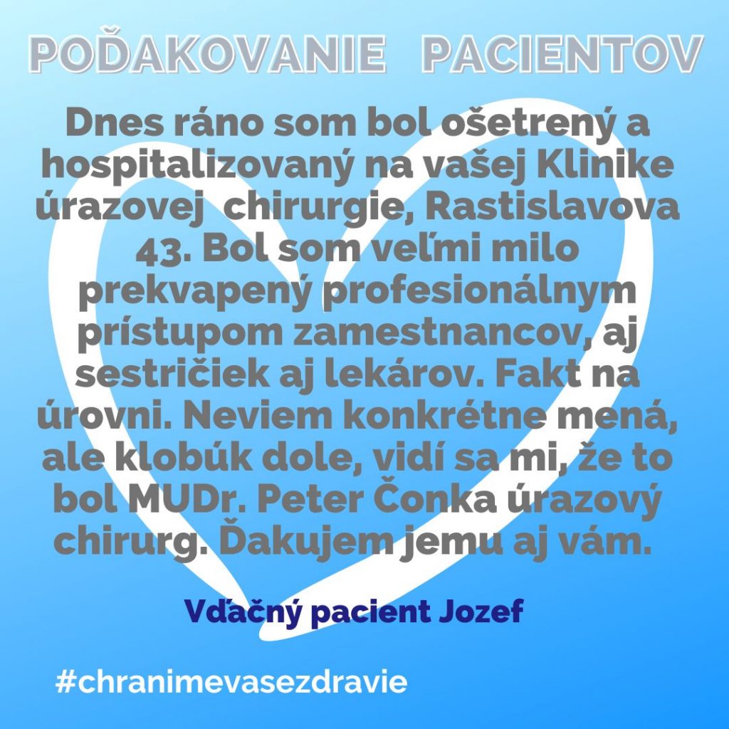 POĎAKOVANIE  pre  Kliniku úrazovej chirurgie, Rastislavova 43.