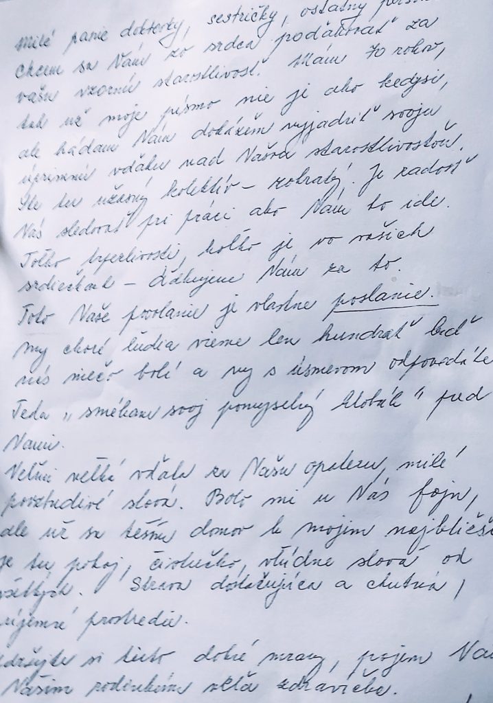 POĎAKOVANIE  pre Denný psychiatrický stacionár, I. psychiatrickej kliniky, Tr. SNP 1.