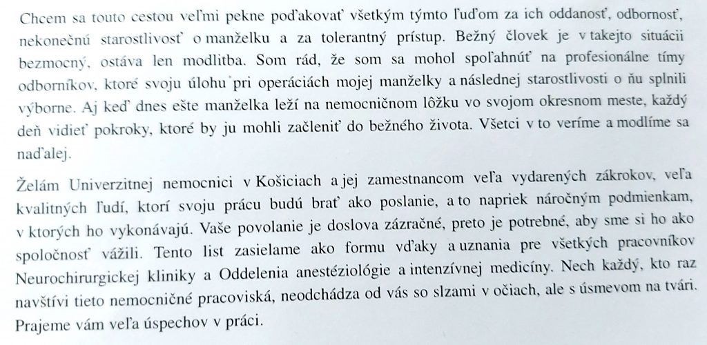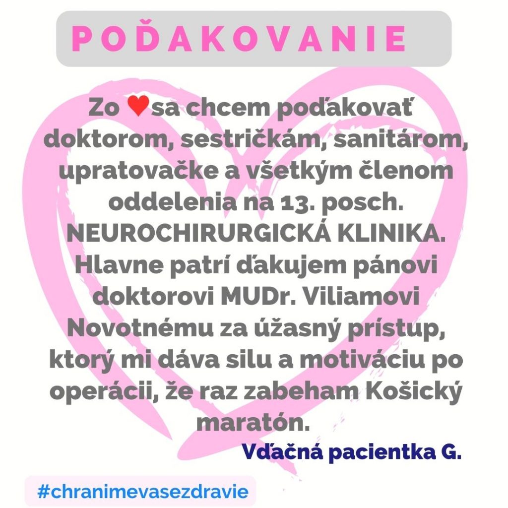 POĎAKOVANIE  pre Neurochirurgickú kliniku, Tr. SNP 1.