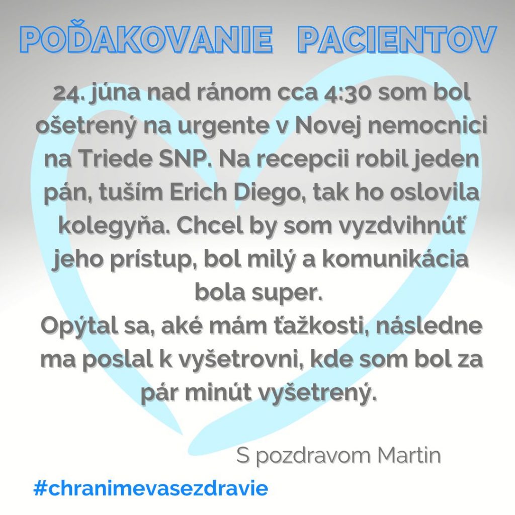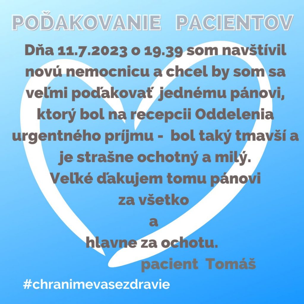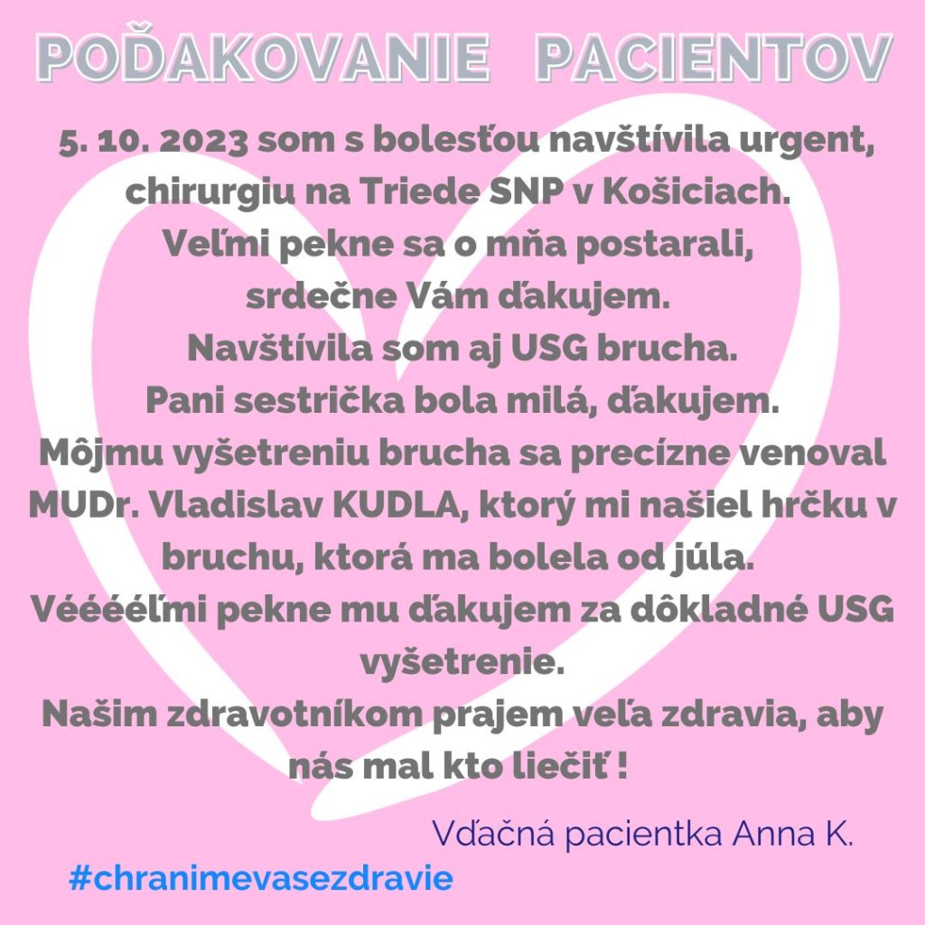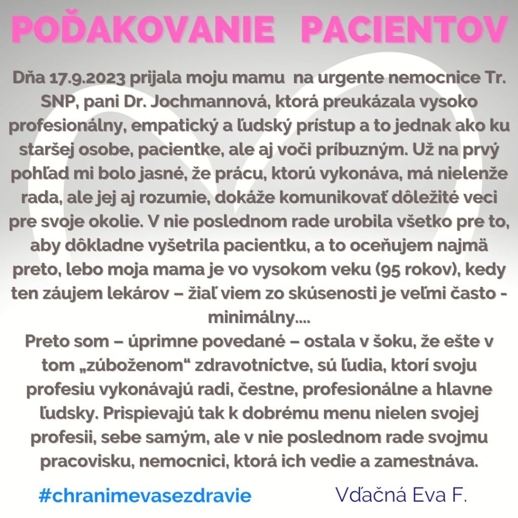 POĎAKOVANIE  pre Oddelenie urgentného príjmu, Tr. SNP 1.