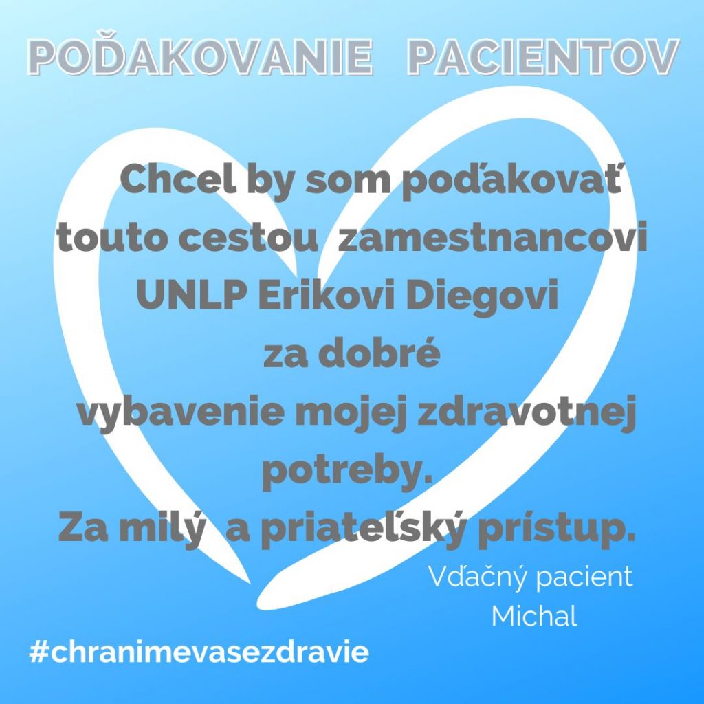 POĎAKOVANIE  pre UNLP Košice.