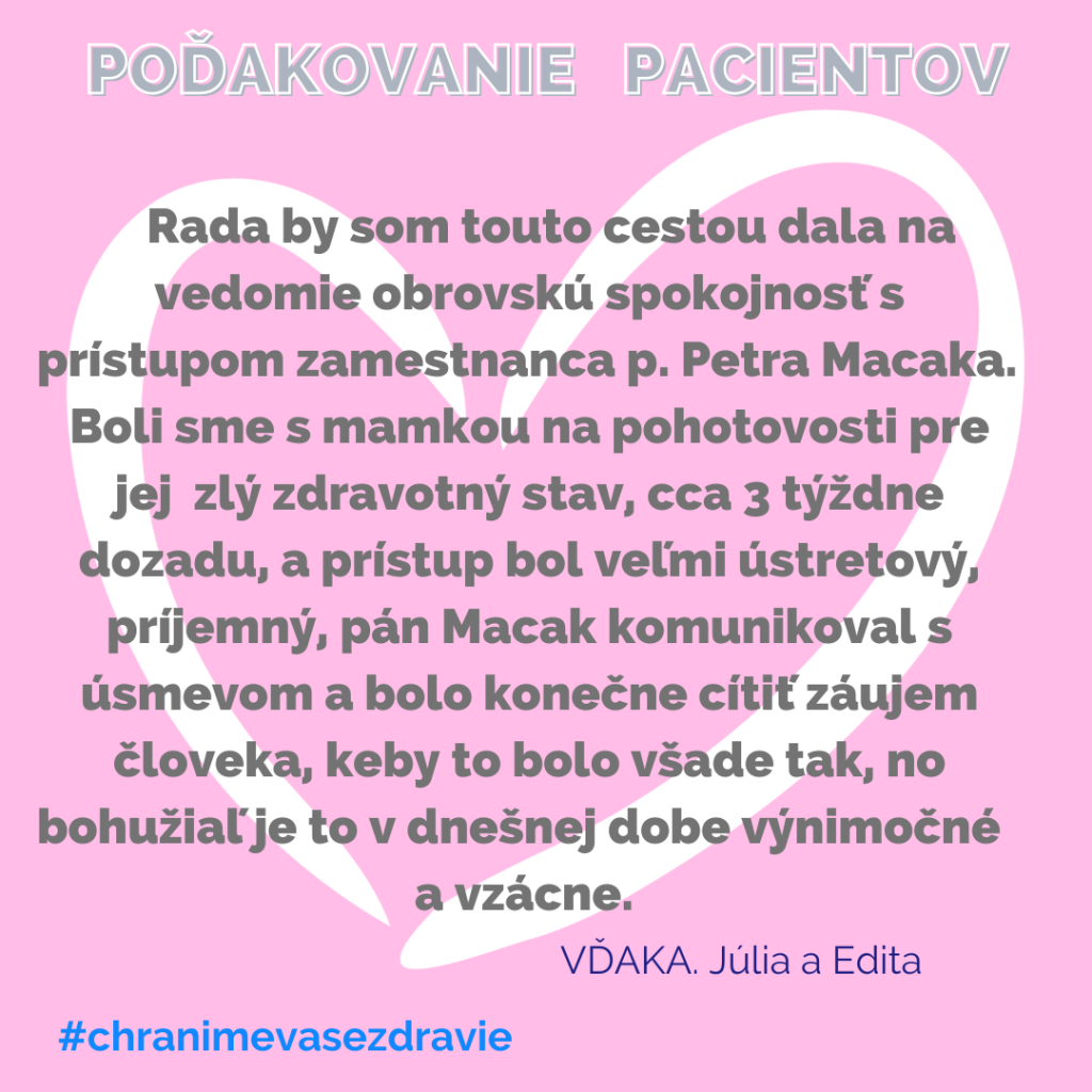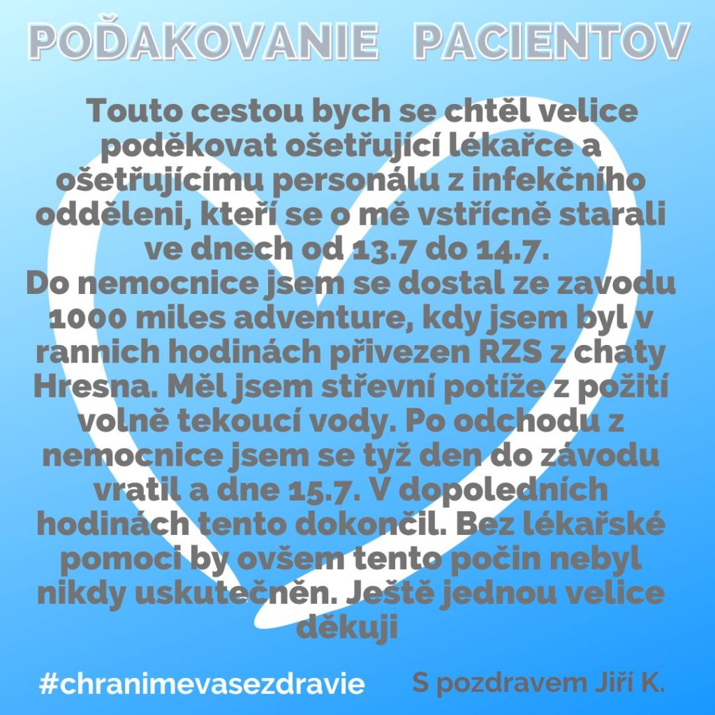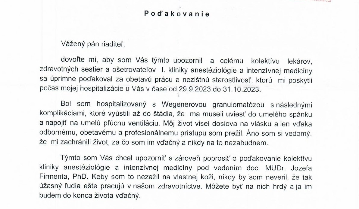 POĎAKOVANIE  pre Odd. anestéziológie a intenzívnej medicíny, Rastislavova 43 a ďalších kolegov.