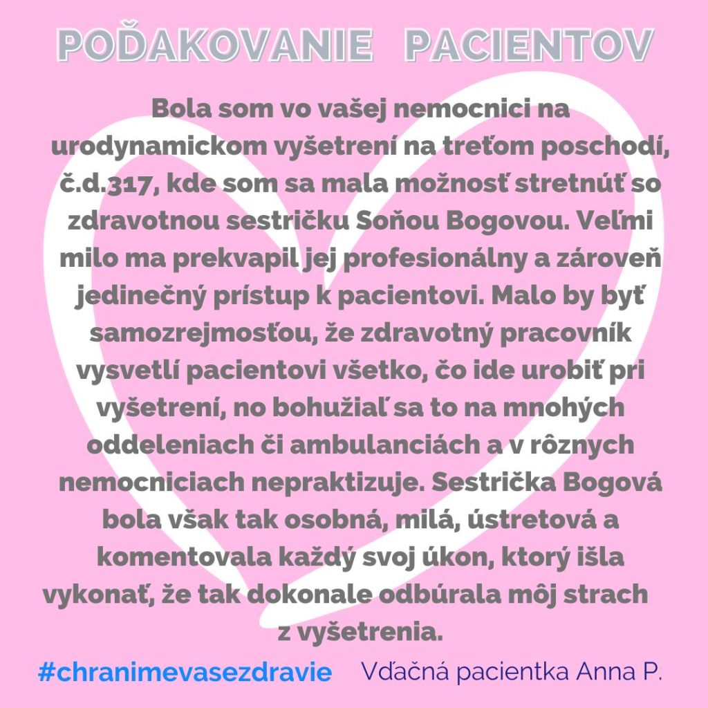 POĎAKOVANIE  pre Urologické oddelenie,  Rastislavova 43.